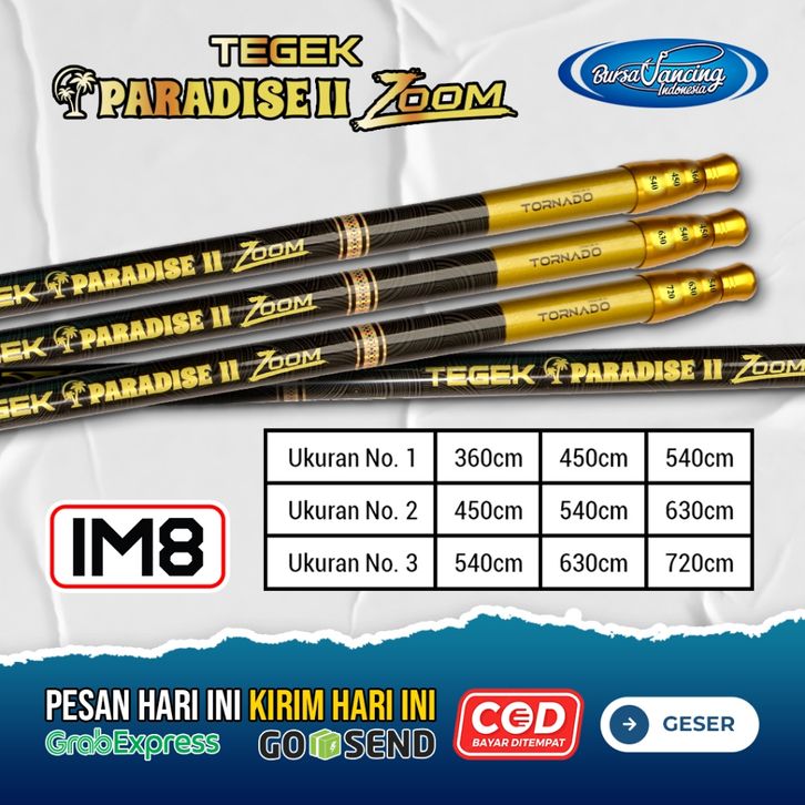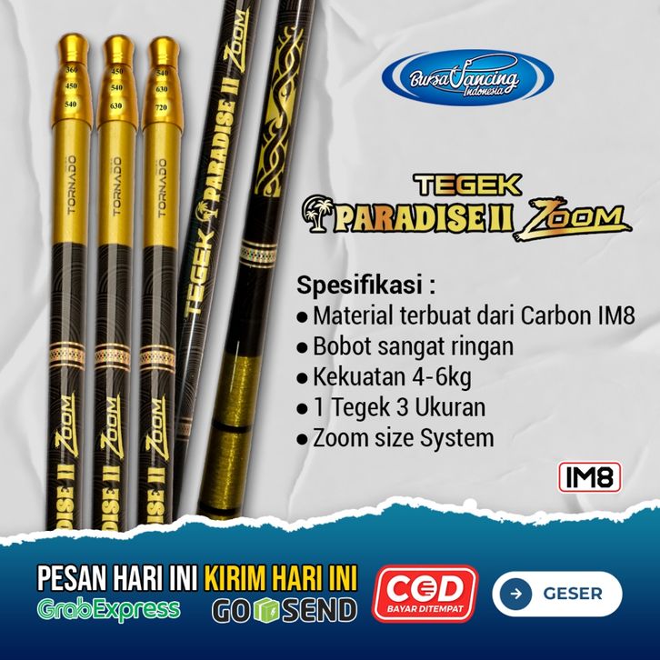 Joran tegek Paradise Tegek Pancing Paradise II Zoom Tornado Beli 1 Dapat 3 Ukuran | Carbon IM8 Zoom System