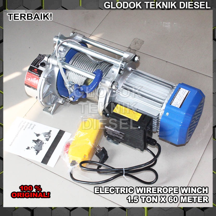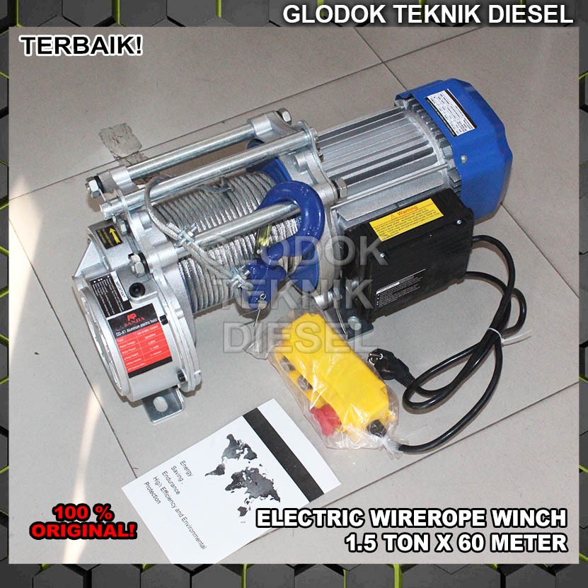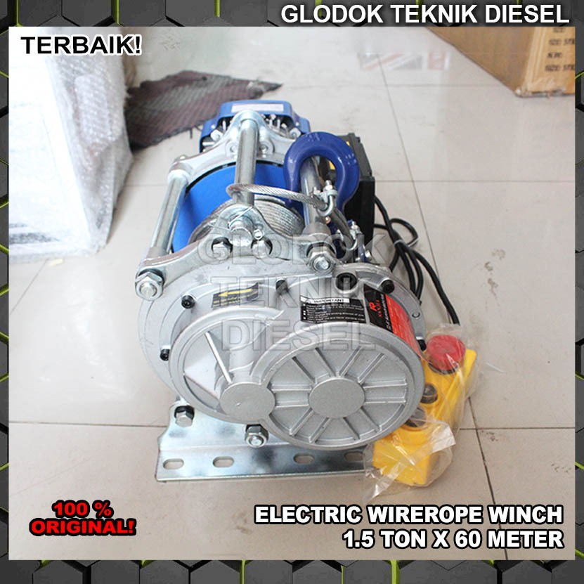 ELECTRIC WIRE ROPE WINCH HOIST 1.5 TON X 120 METER 1500 KG 1 PHASE WIREROPE ORIGINAL TERBAIK