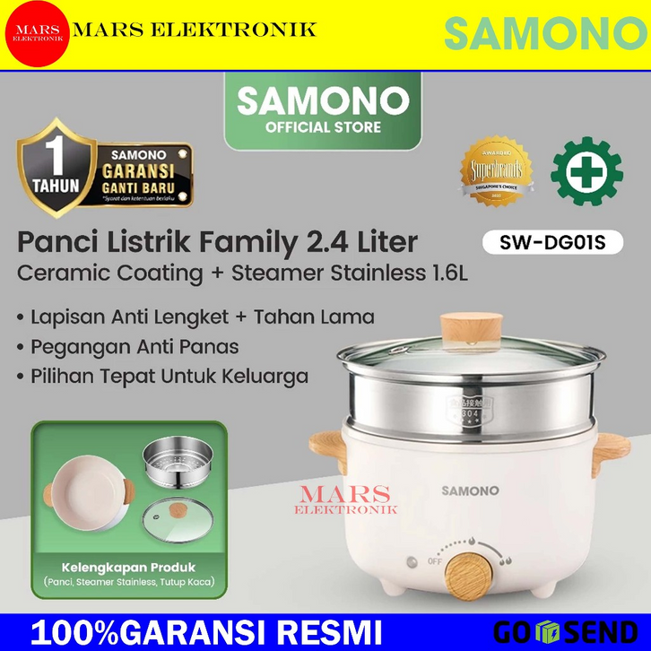 SAMONO PANCI LISTRIK 2,4L + 1,6L - PANCI ELEKTRIK TEFLON KERAMIK - SW-DG01S - PANCI ELEKTRIK JUMBO - READY