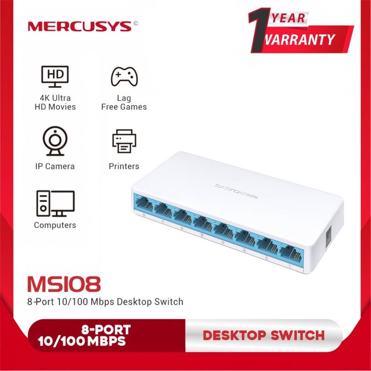 MERCUSYS MS108 DESKTOP SWITCH HUB 8 PORT 10/100 MBPS