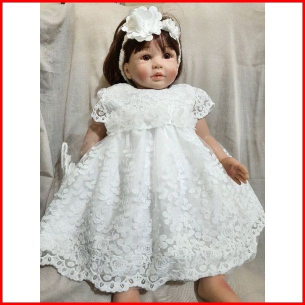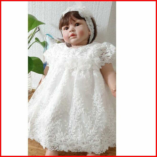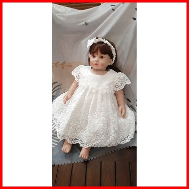 Gaun Baby New Born Gaun Bayi Dress Bayi Dress Aqekah Dress Babtis Angle Motif . B Dan C Warna Putih Usia 0 - 24 Bulan