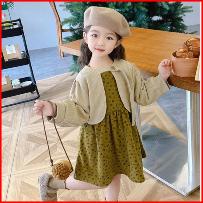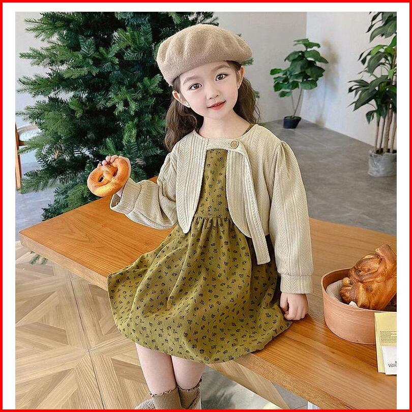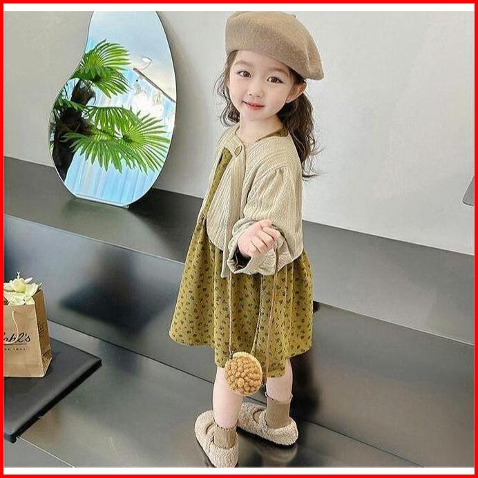 Kf Cat Dress Anak Perempuan Lengan Panjang Motif Bunga Bahan Katun Korean Style Usia 1-4 Tahun