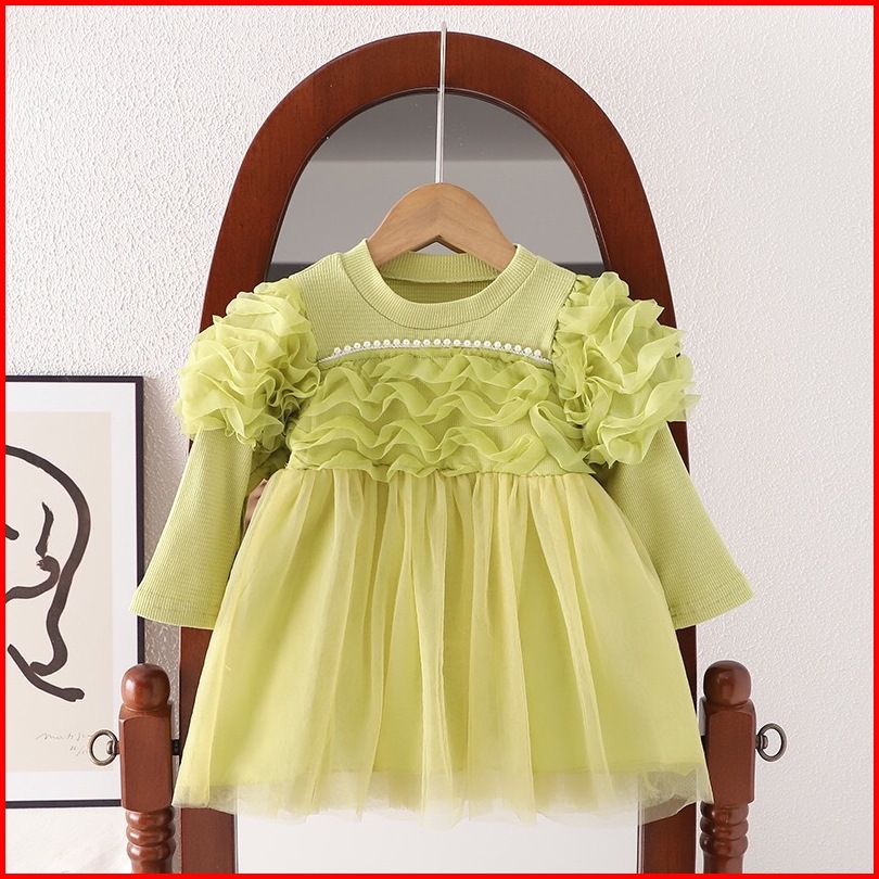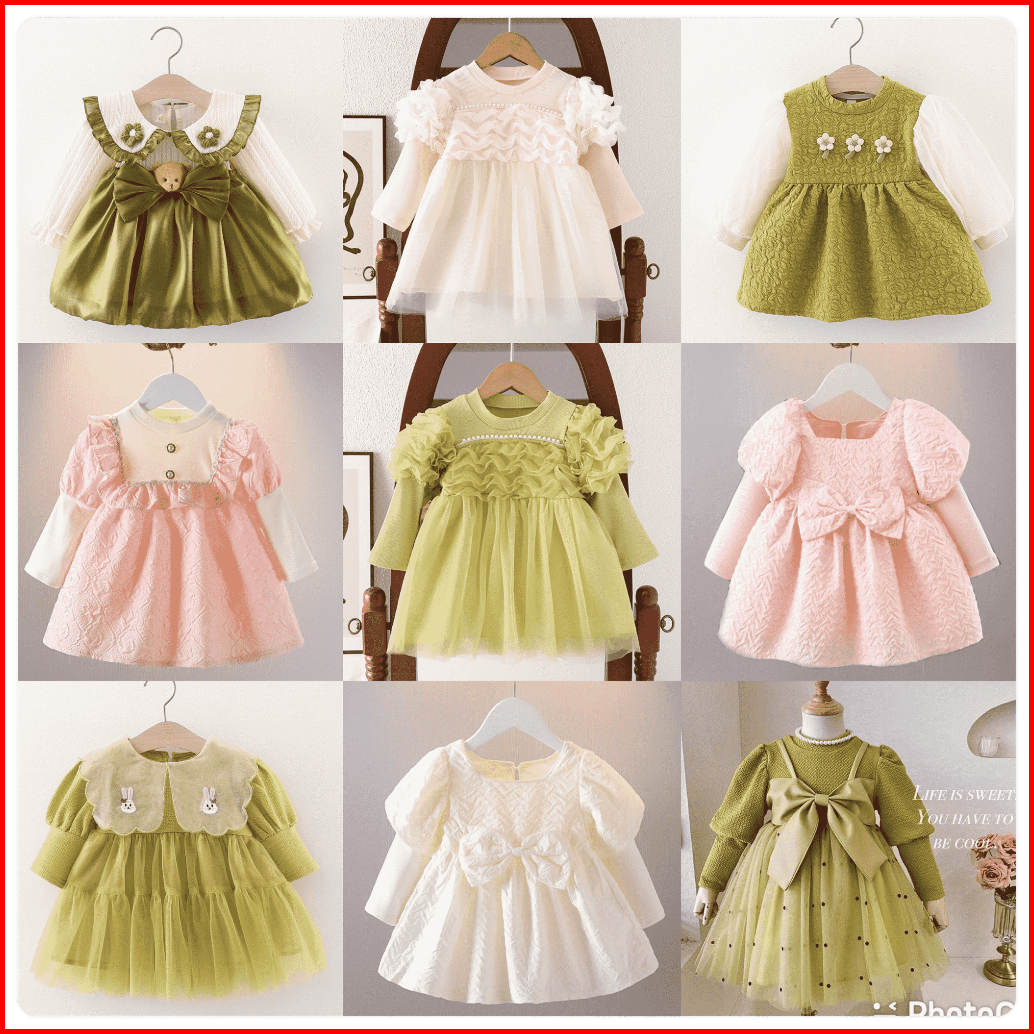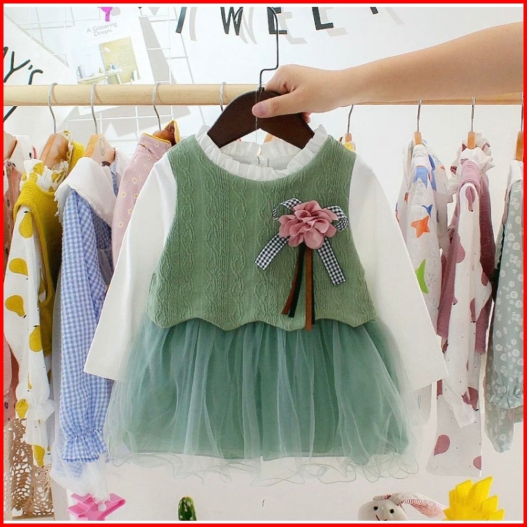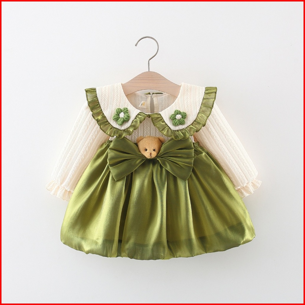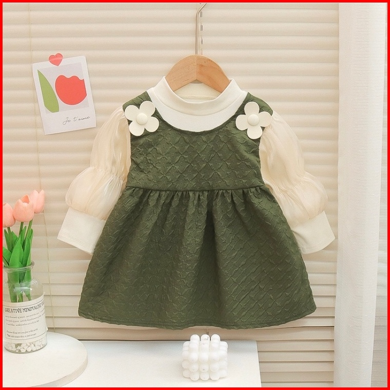 Incessbaby Dress Anak Bayi Perempuan Lengan Panjang Hijau Sage Lebaran