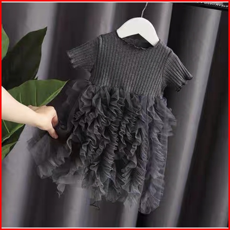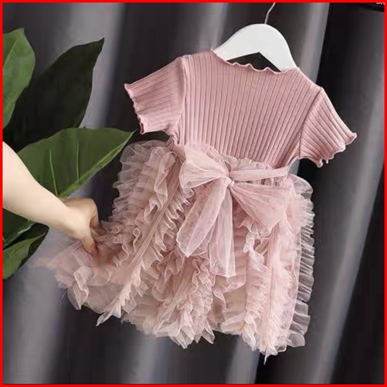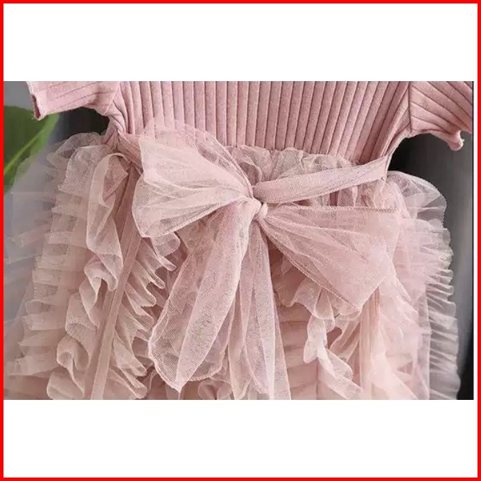 Dress Anak Perempuan Gaun Bayi Import Korea Newborn Lengan Pendek Tutu Lebaran Aqiqah Natal