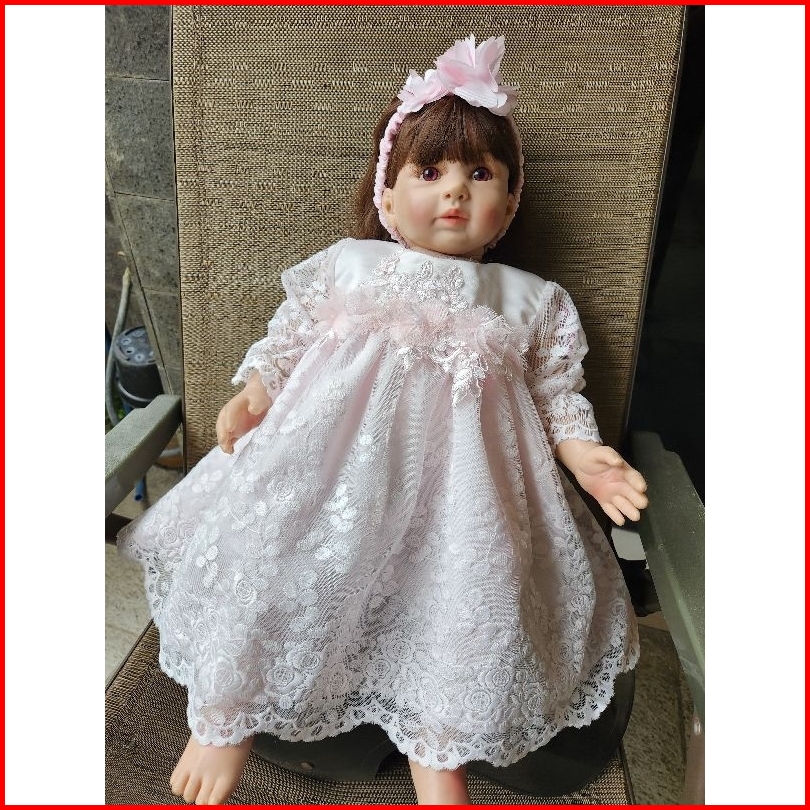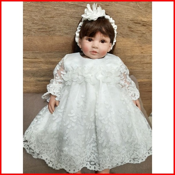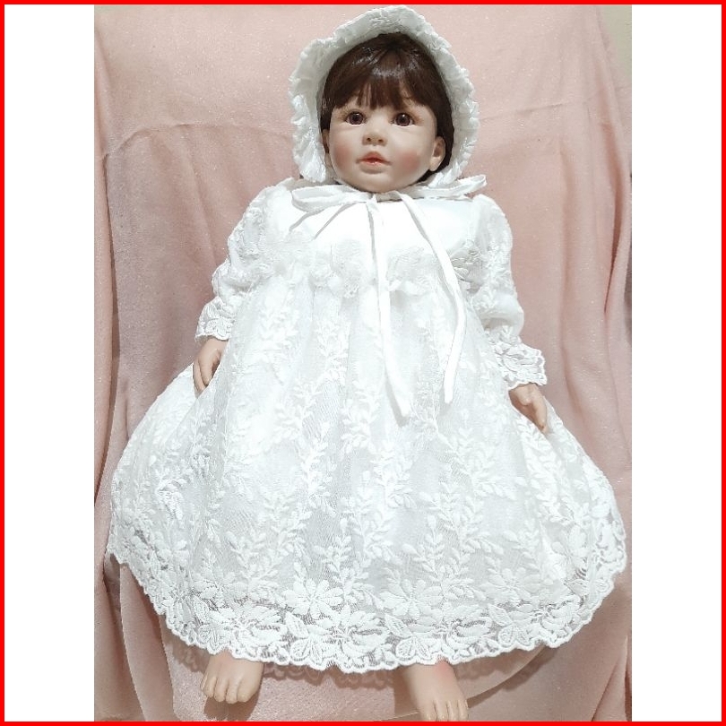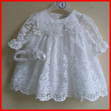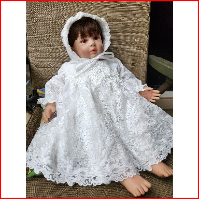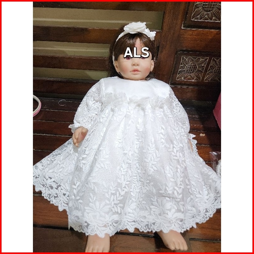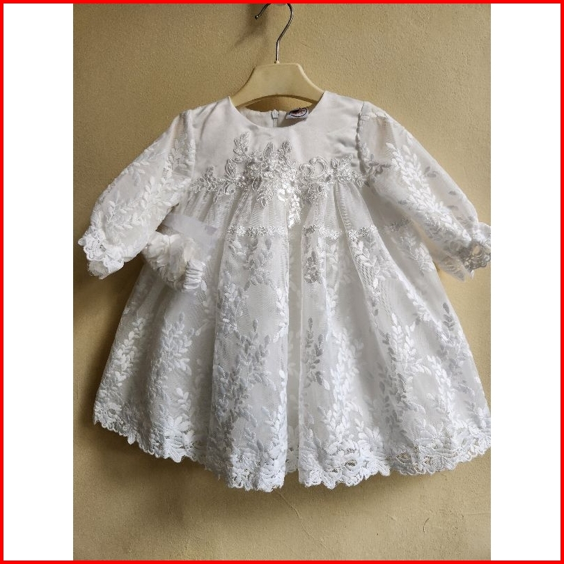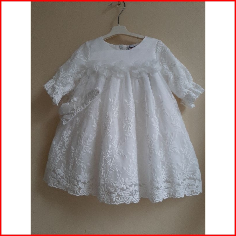 Gaun New Born Putih Dress Bayi Dress Aqekah Dress Babtis Lengan Panjang Michel Usia 0 - 24 Bl