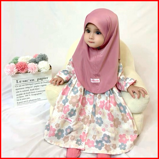 Little Pastella - Nafeesha Gamis Bayi Motif Setelan Gamis Newborn Bahan Rayon Usia 0-12 Bulan