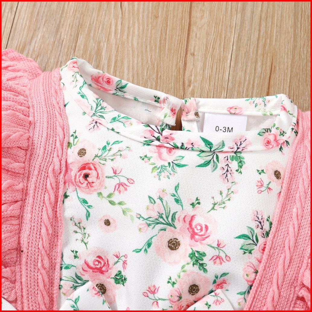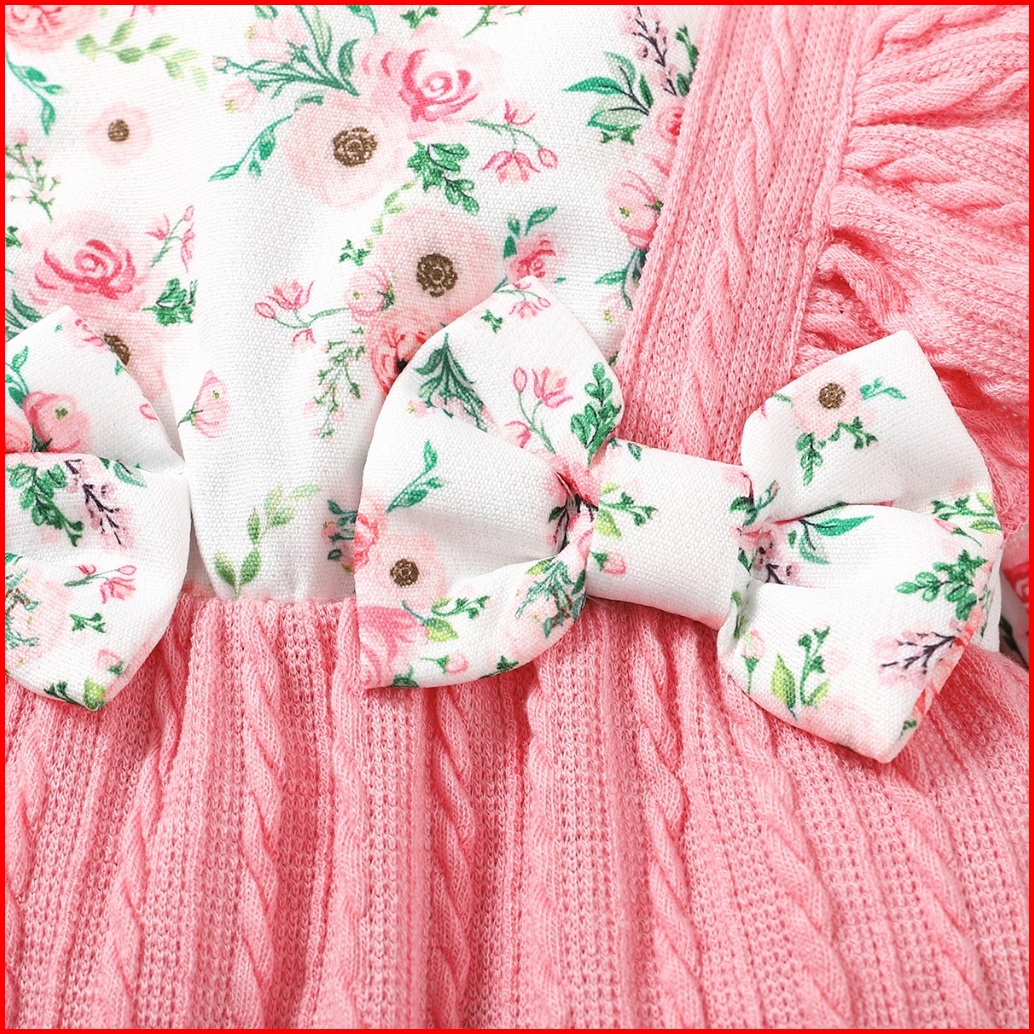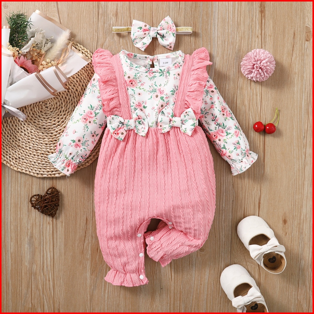 0-18 Months Newborn Baby Girl Floral Romper Dress Long Sleeves Ribbed Boysuit Heaband 2pcs Clothing Set Infant Girl Holi