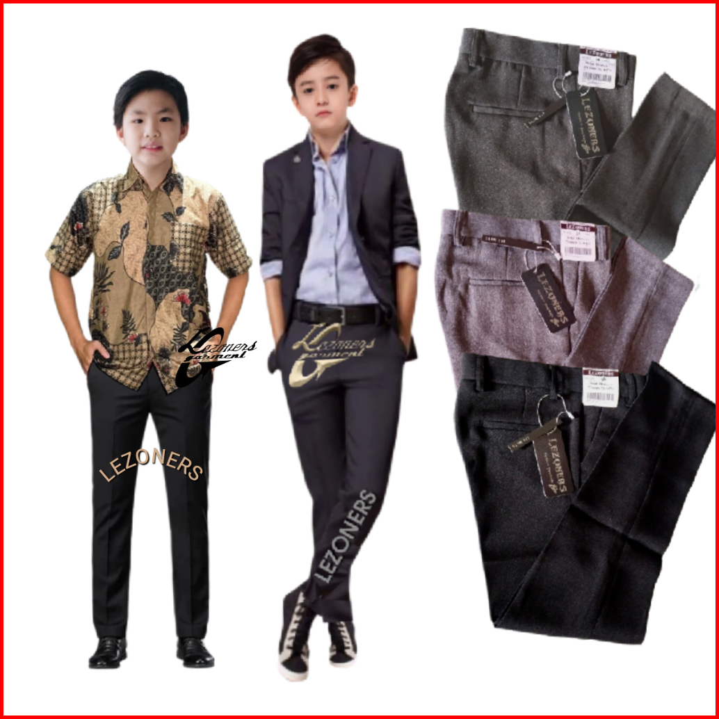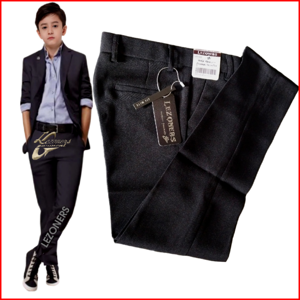 Lezoners - Celana Panjang Pria Bahantebal Halus Celana Bahan Hitam Anak Laki Laki Formal Dan Pria Dewasa Kerja Kantor Pa