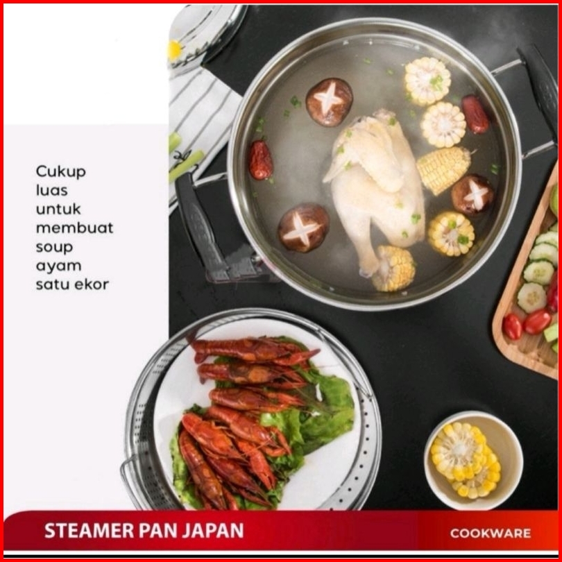 Panci Kukus Steamer Japan Stainless Stell 30cm Dandang Steamer Panca Guna 22 24 26 28 30cm