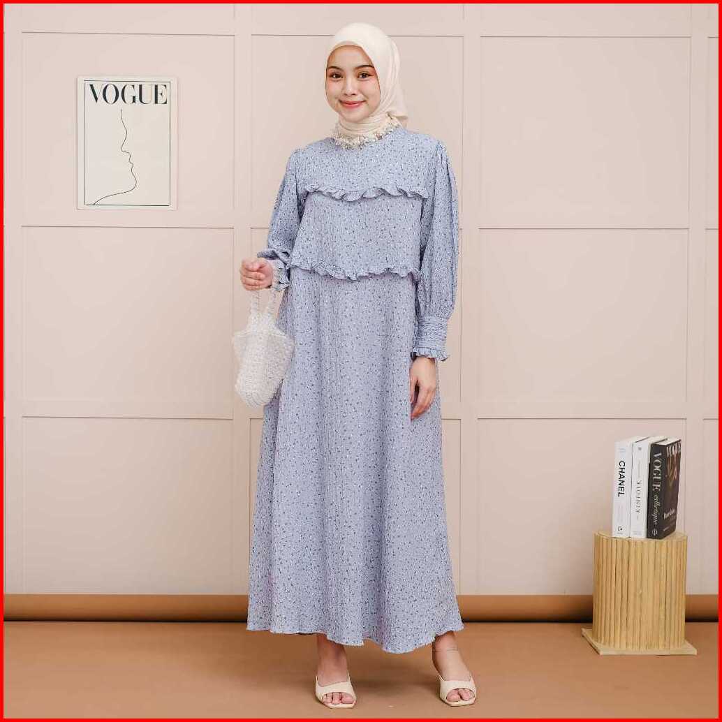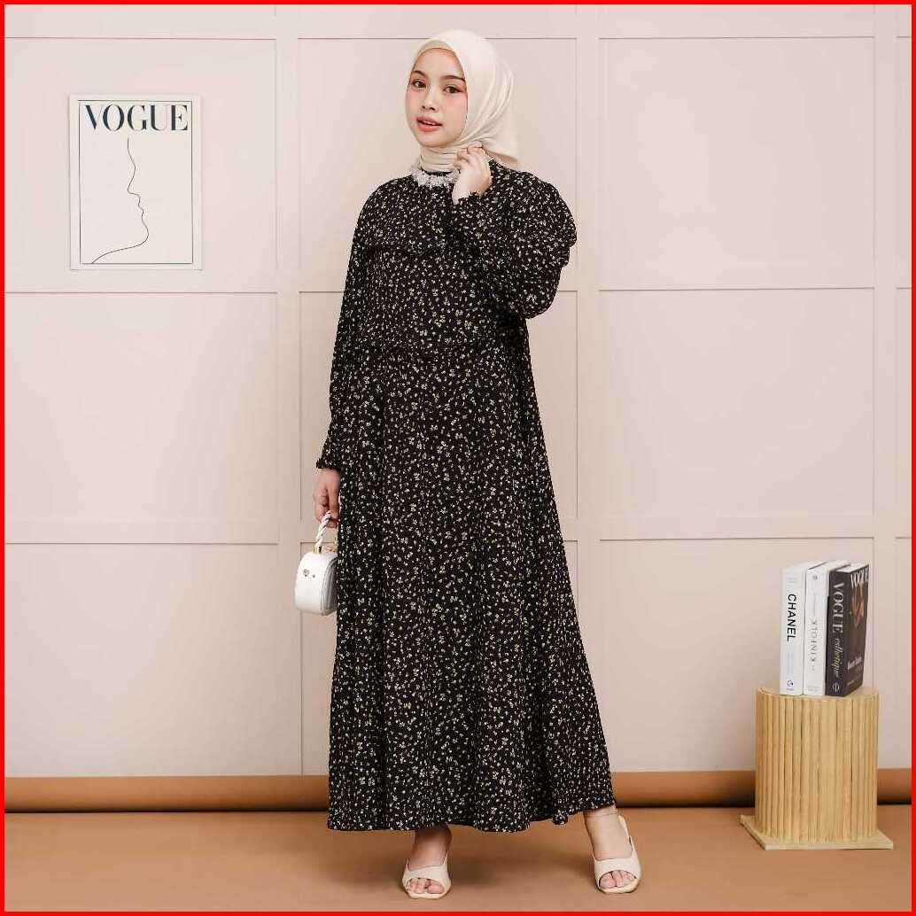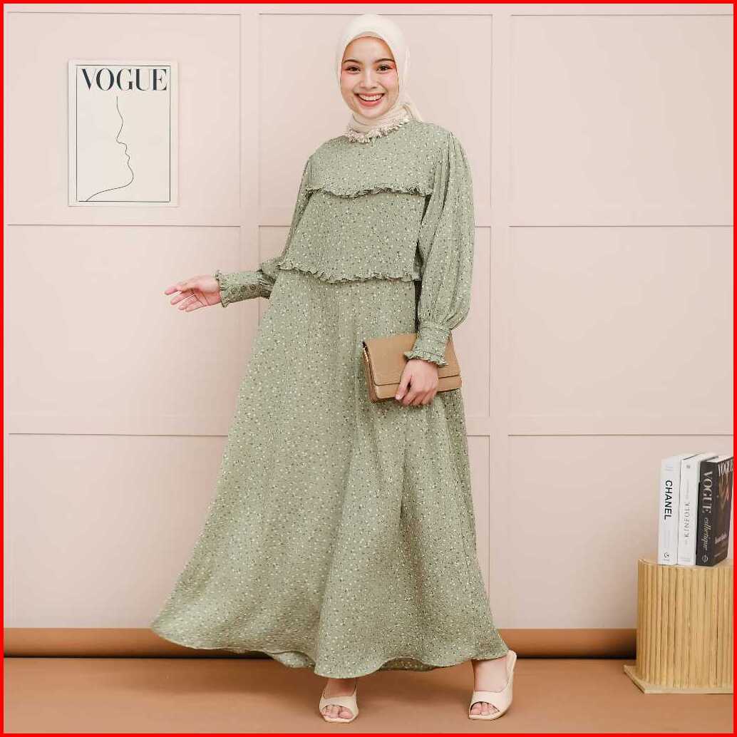 Mayoutfit Olizza Mididress Dress Gamis Floral Layer Frill Puff Sleeve