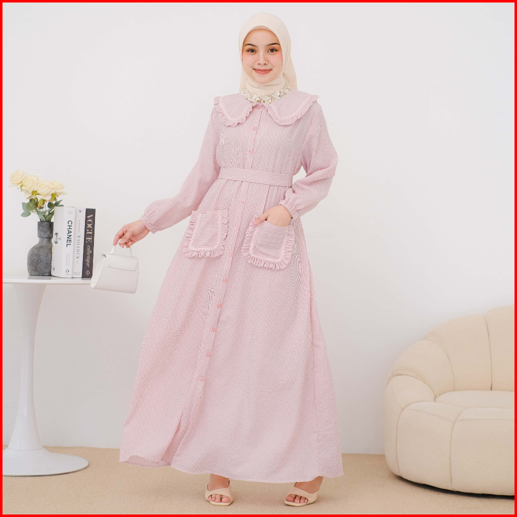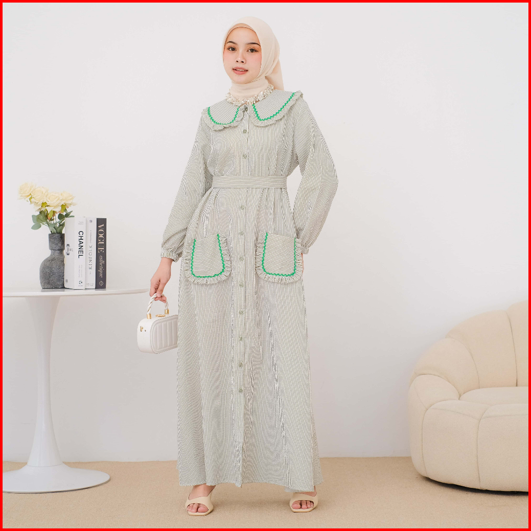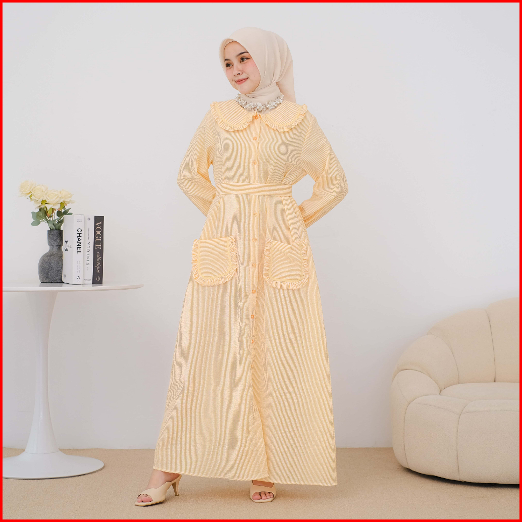 Mayoutfit Finzya Maxidress Dress Gamis Kasual Flat Collar
