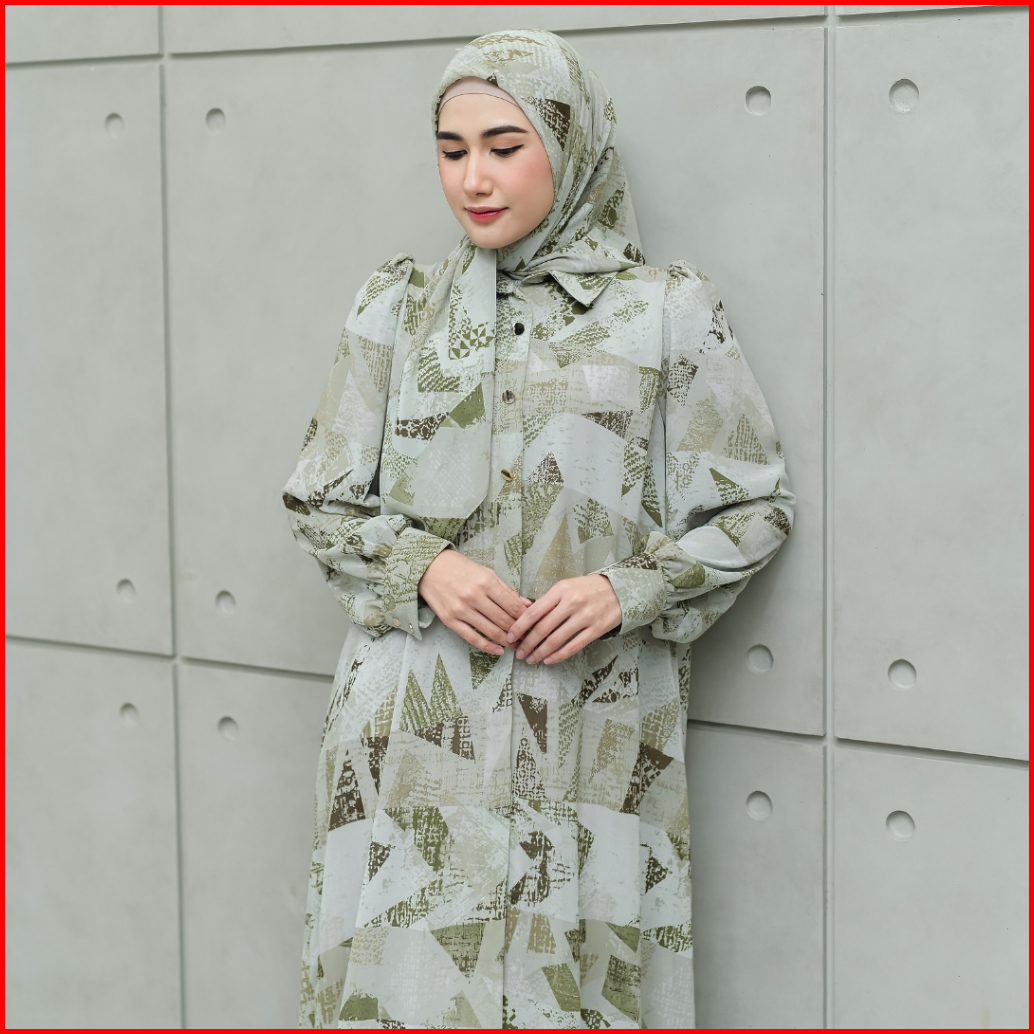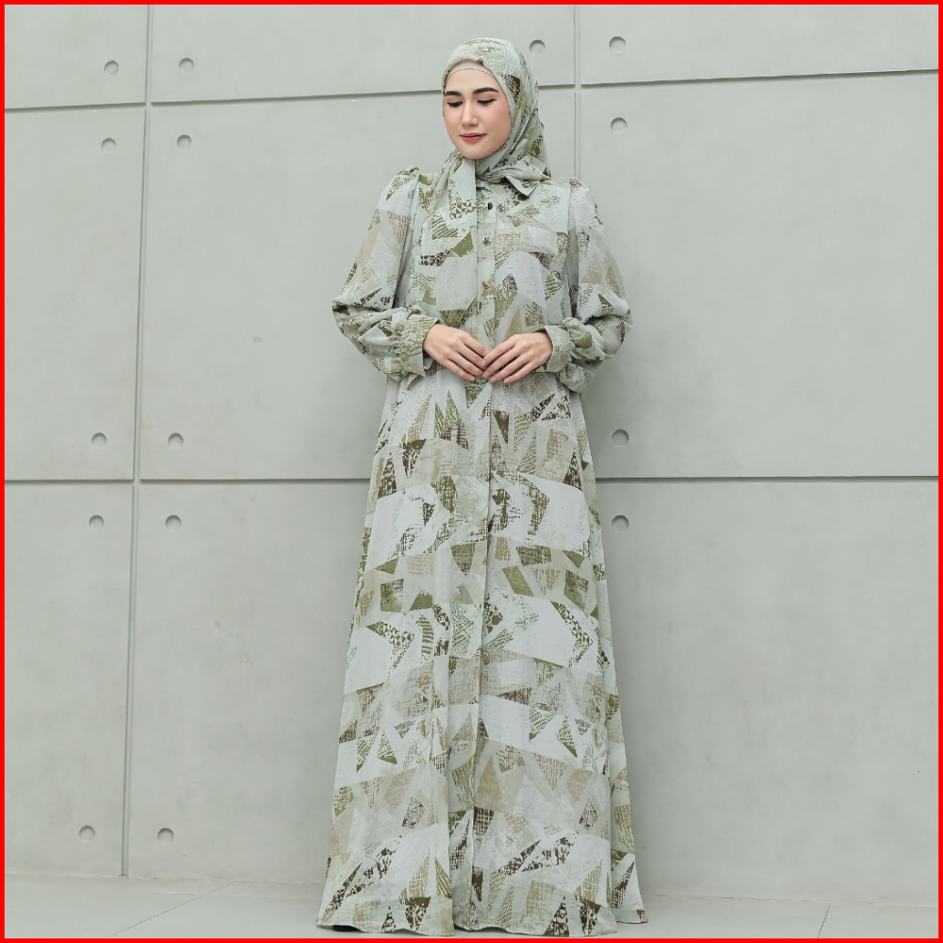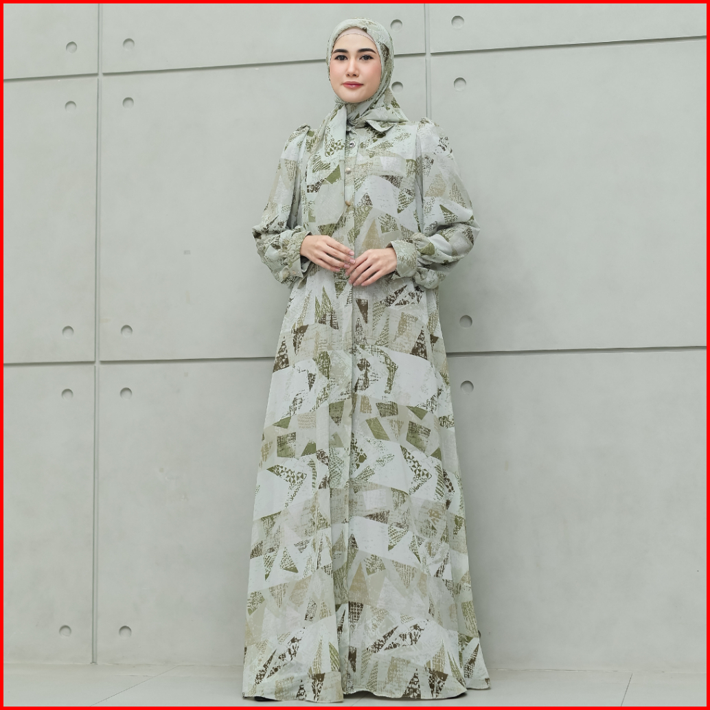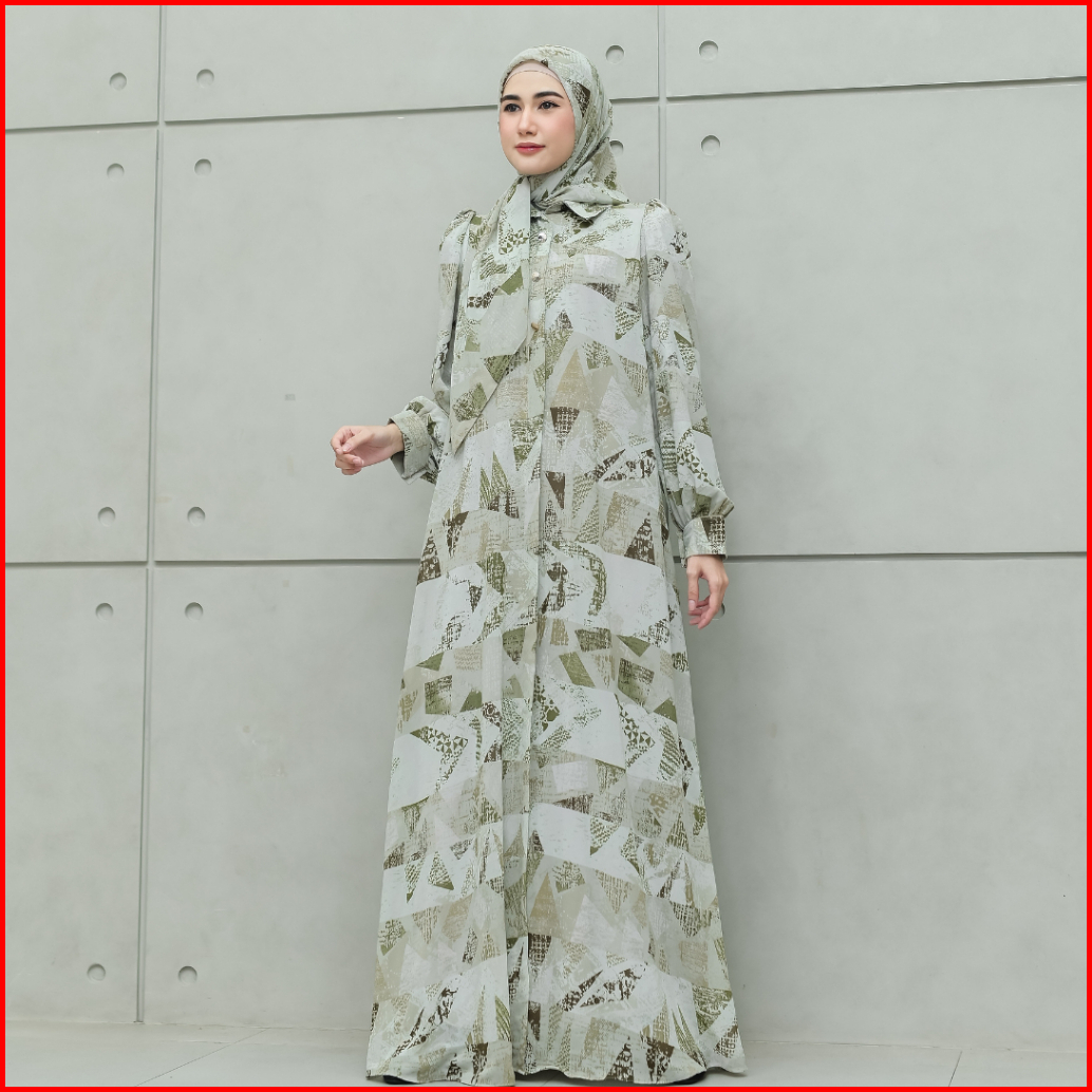 Aisyalina Id Mirabelle Dress Set Series 4 Pashmina Segiempat Bahan Ceruty Armany Baby Doll Motif Printing Gamis Wanita E