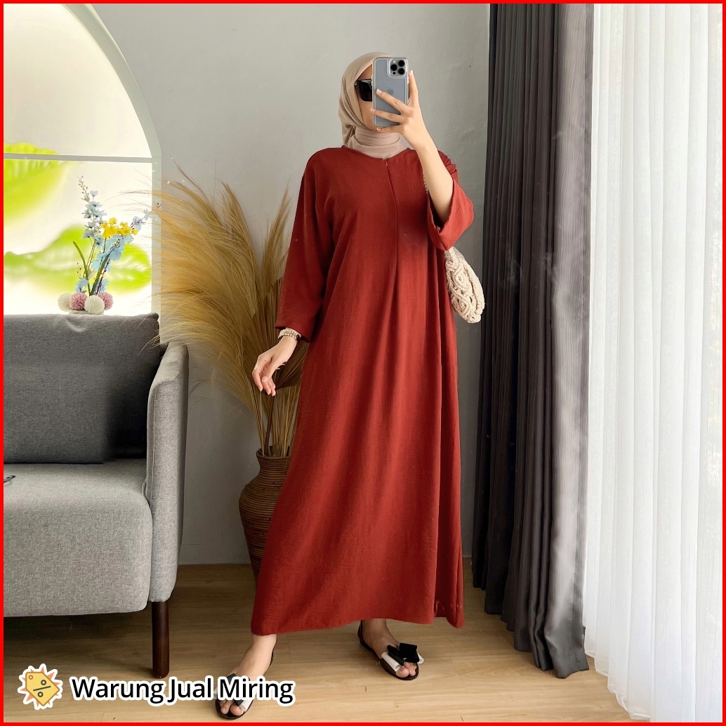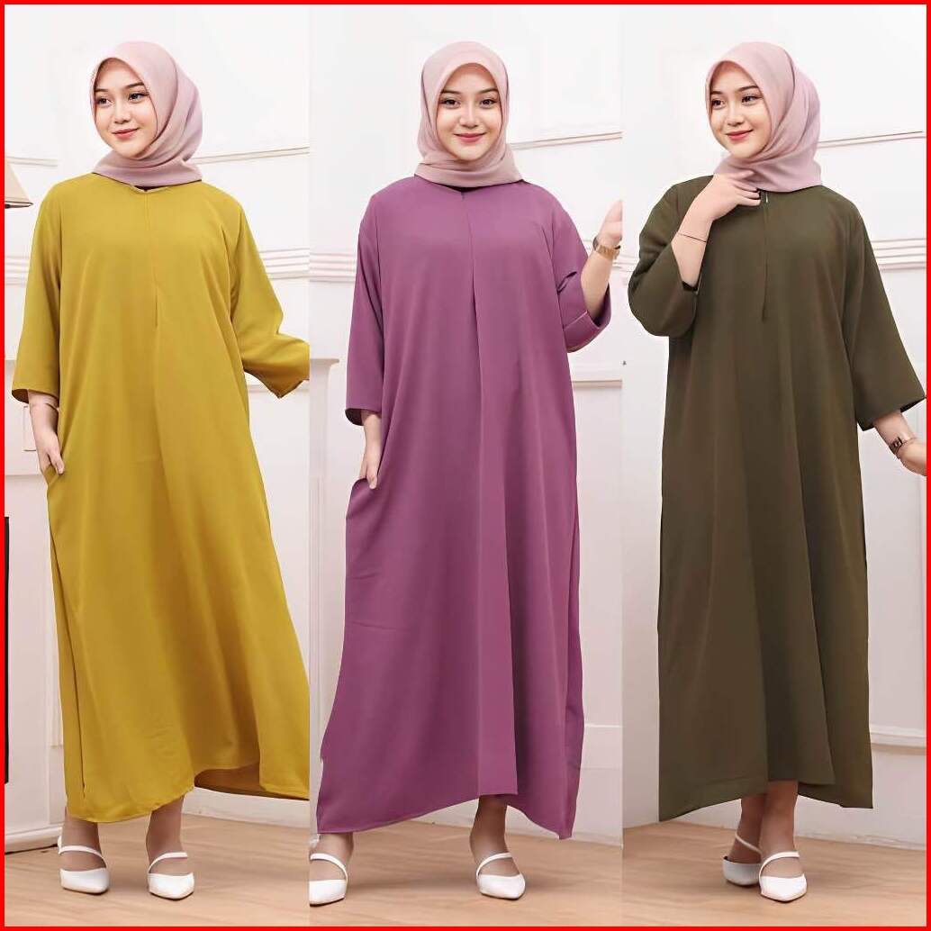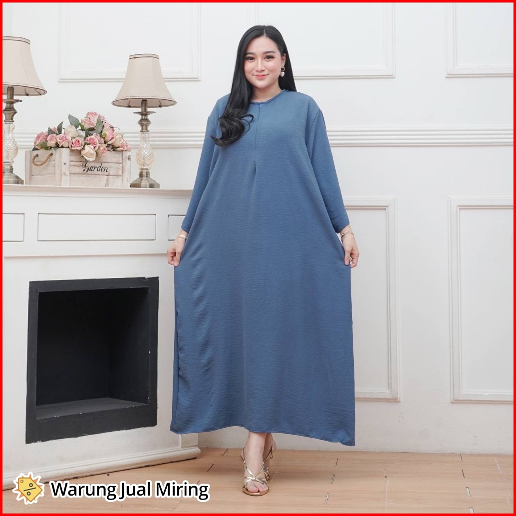 Dress Gamis Daster Tunik Crinkle Airflow Polos Busui Lengan 3 4 Baju Gamis Panjang Santai Harian Rumahan Wanita Remaja P