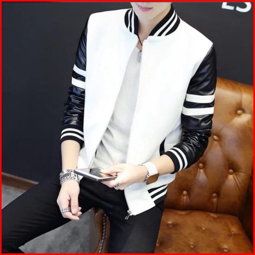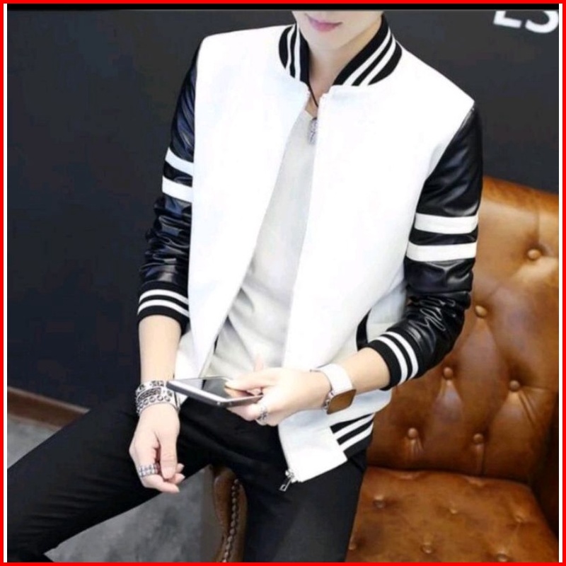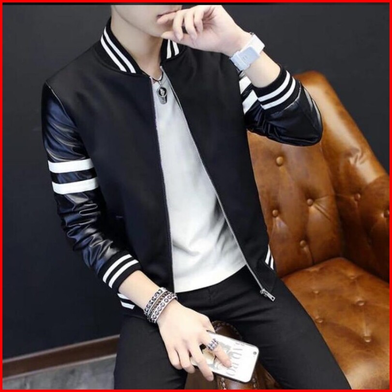 Jaket Semi Kulit Pria Jaket Kombinasi Jaket Bomber Pria Jaket Korea