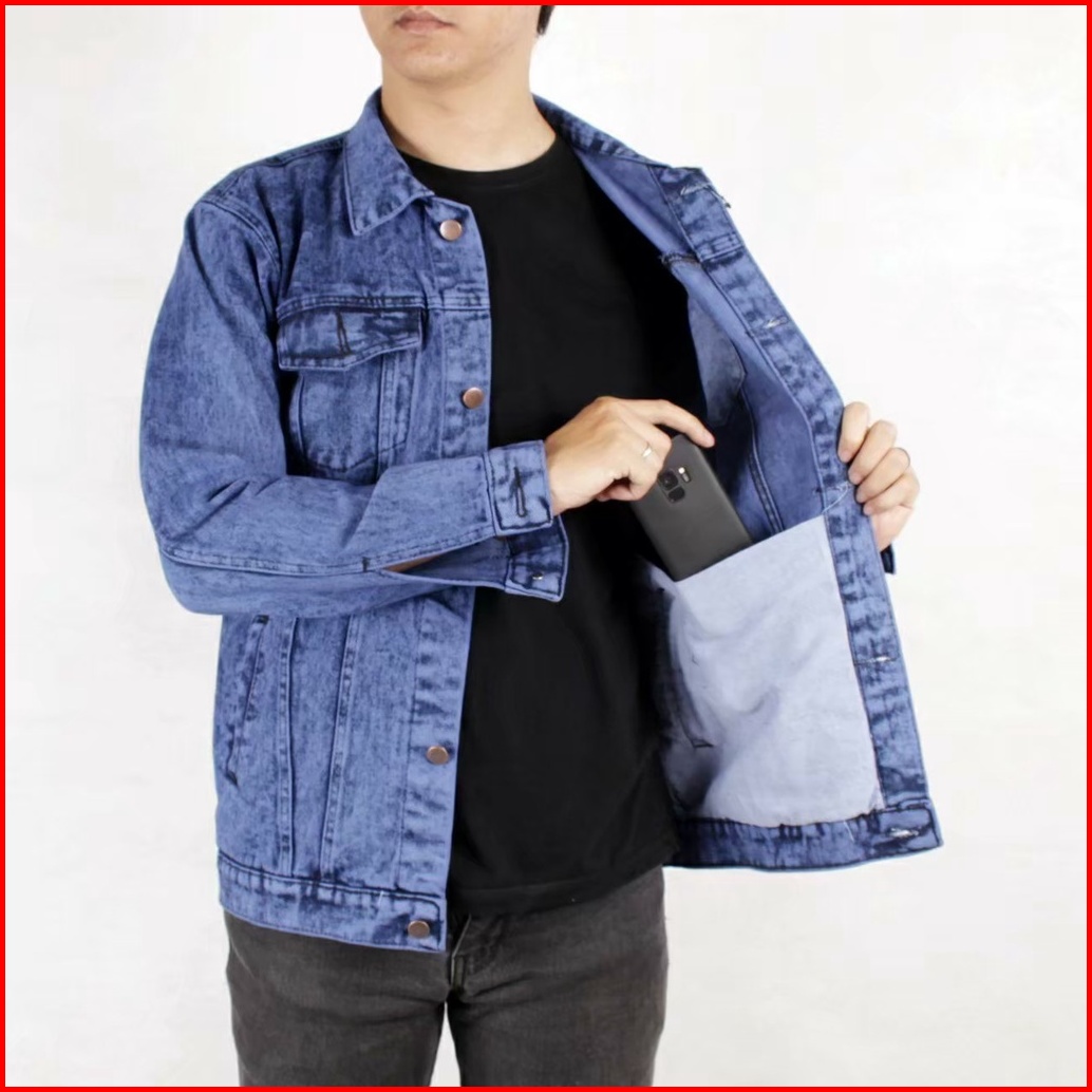 Dropstore Jaket Jeans Denim Pria M-xxl Nyaman Trendi