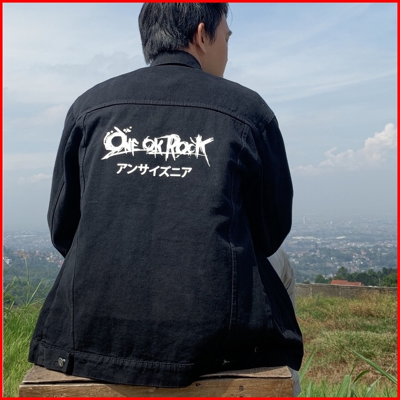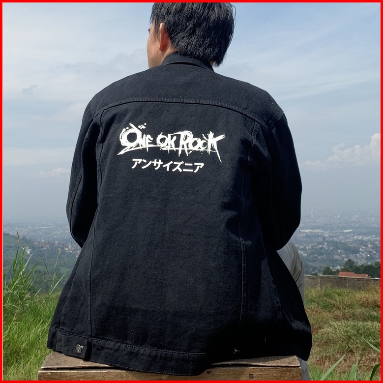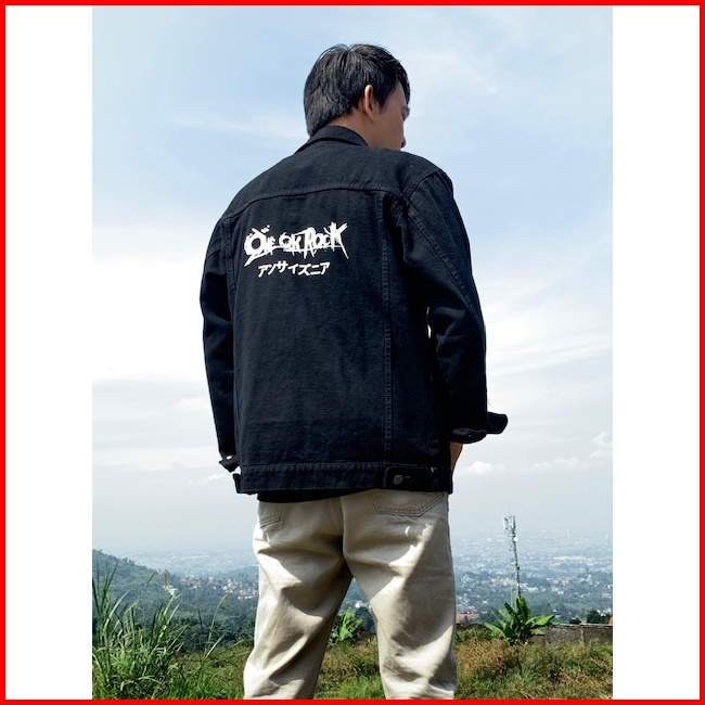 Jaket Jeans Denim Pria - Screen Printing Sablon Belakang - Blvck One Ok Rock Sablon Dtf
