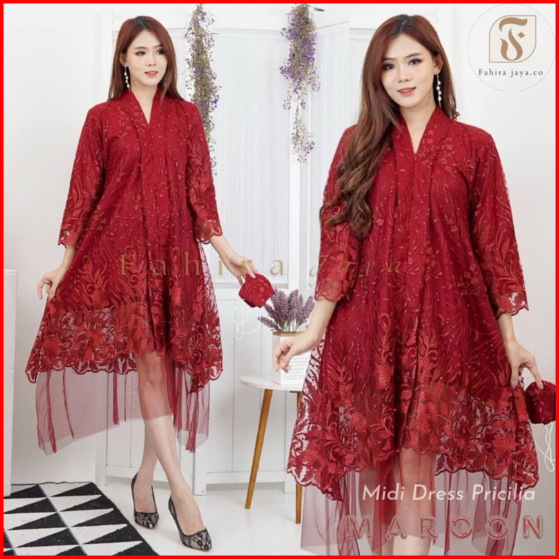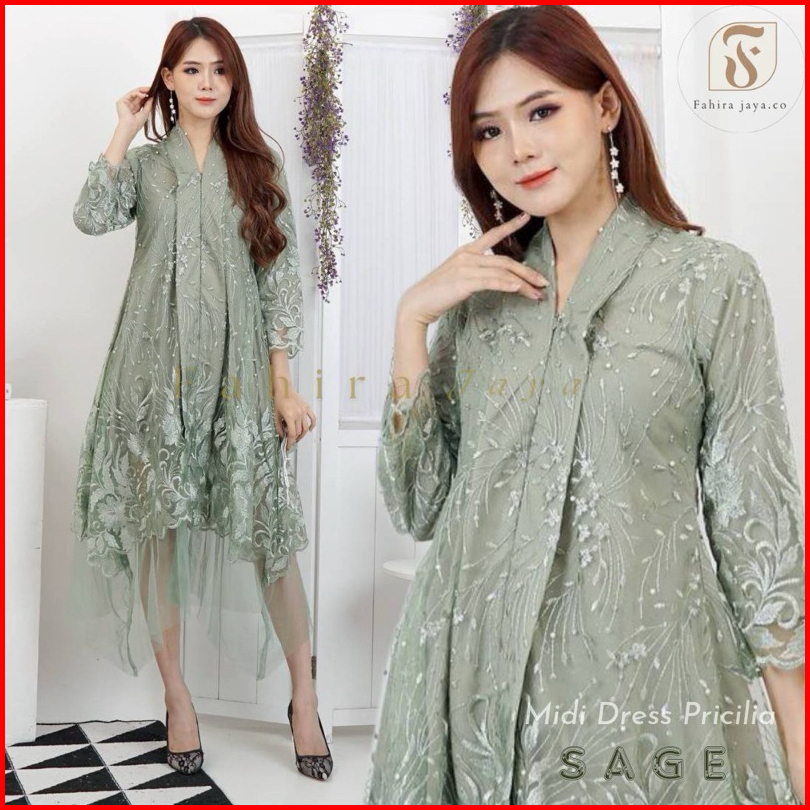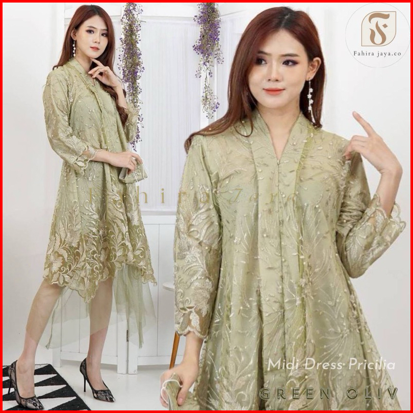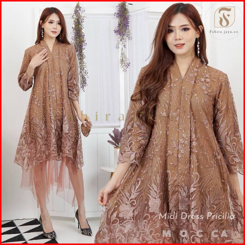 Dheefa - Dress Pesta Pricilia Terbaru - Kebaya Kebaya Modern - Dress Kondangan - Midi Dress - Dress Mewah - Dress Premiu