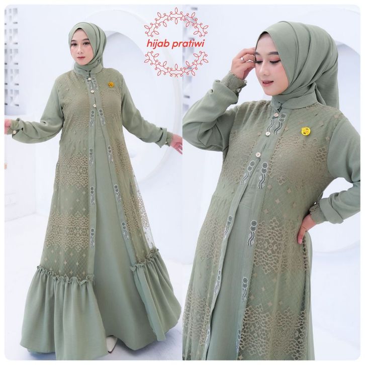 Hijab Pratiwi - Kanza Dress Gamis Crinkel Mix Brokat malika Valentino Free Hijab Gamis Elegan Busui Viral Kekinian 2024