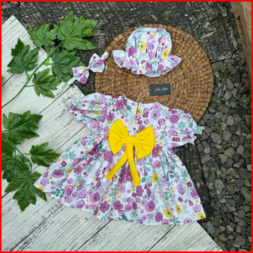 Dress Starla Bonus Topi Dan Bando Dress Bayi Dress Anak Perempuan By Zahra