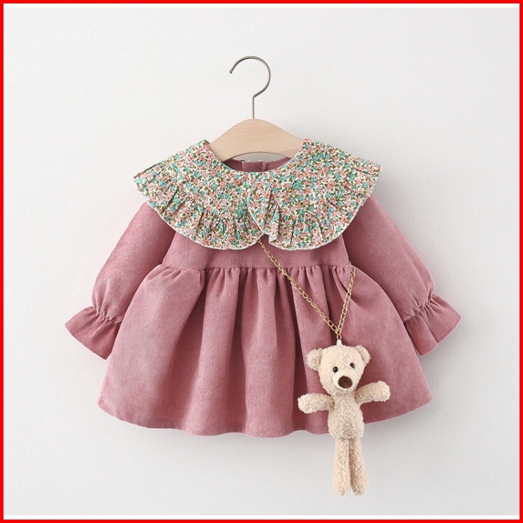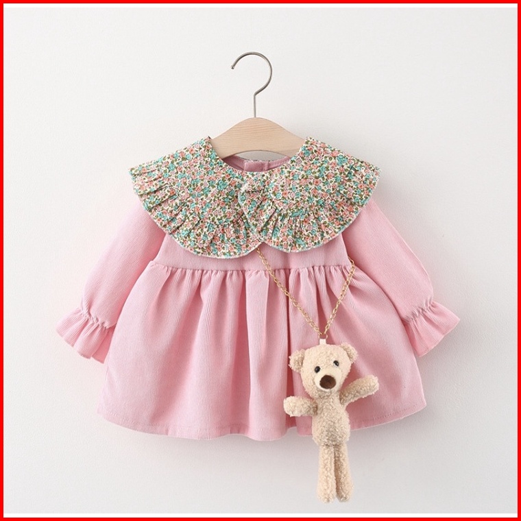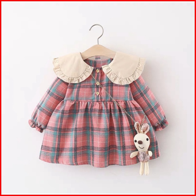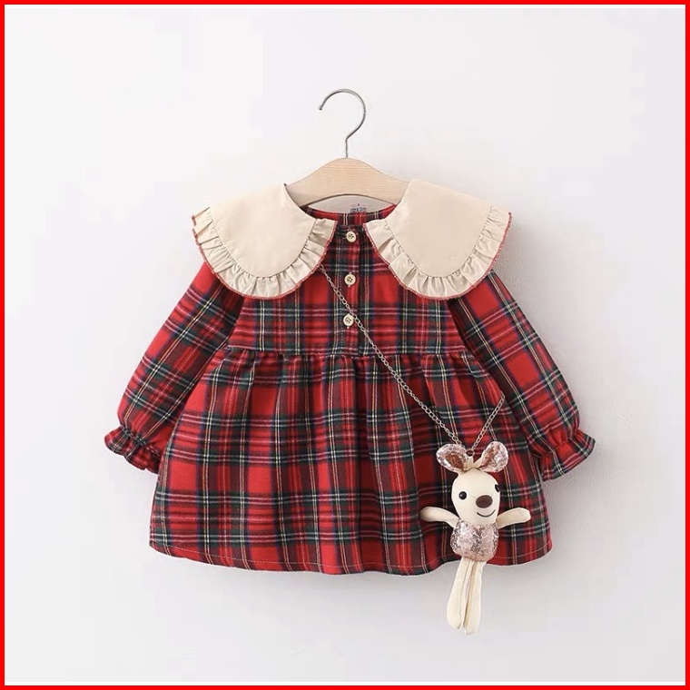 Dress Anak Perempuan Gaun Bayi Cewek Import Korea Motif Kotak Free Boneka Natal