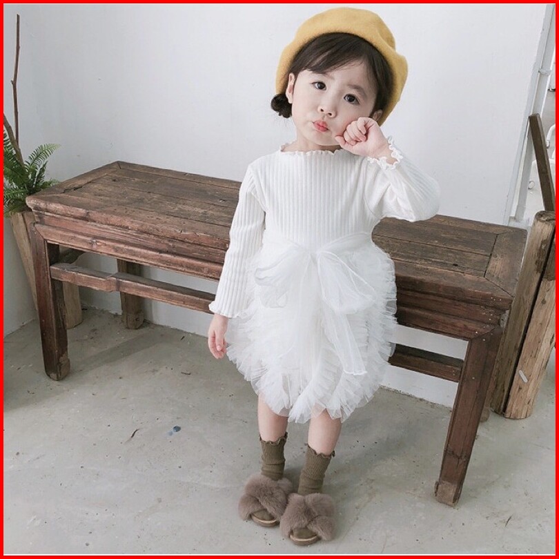 Incessbaby Gaun Baju Dress Anak Bayi Perempuan Cewek Import Korea Newborn Lengan Panjang Tutu Lebaran Aqiqah Natal Bapti