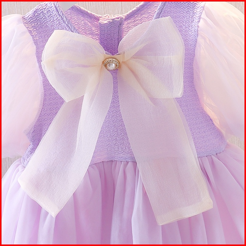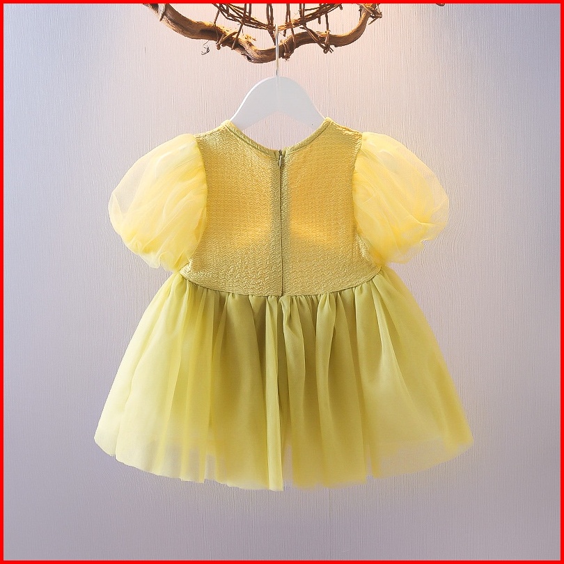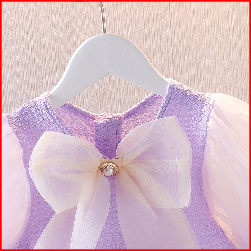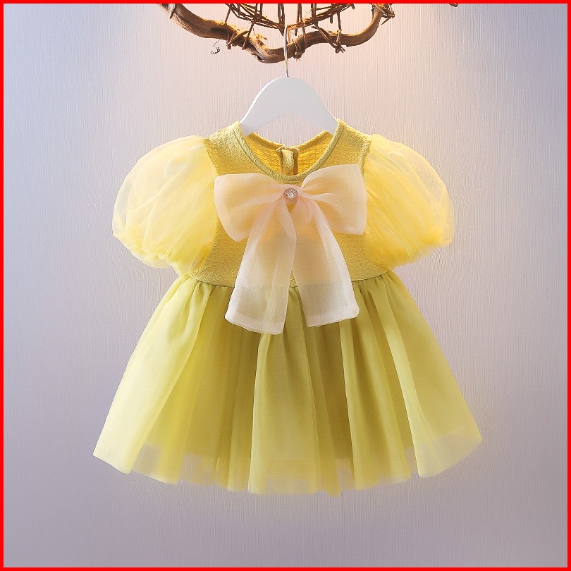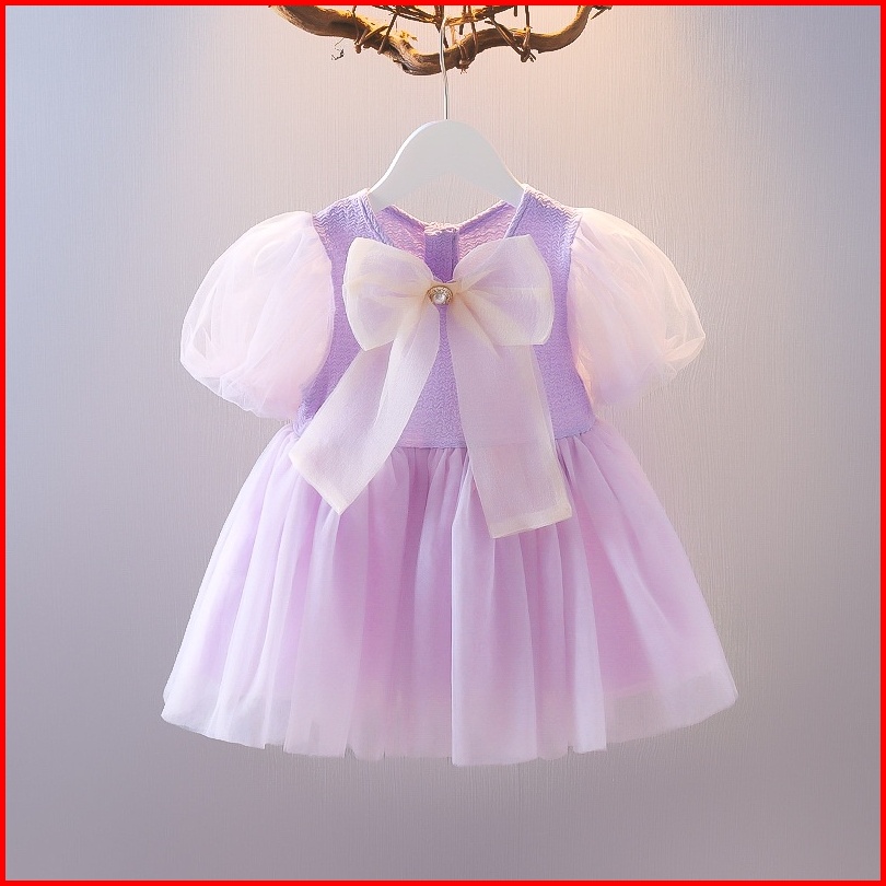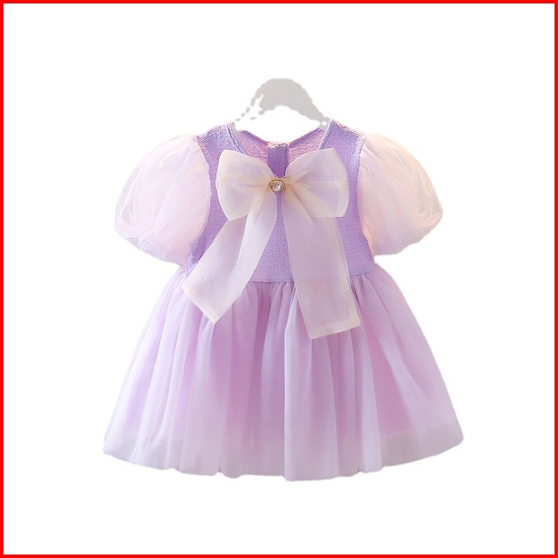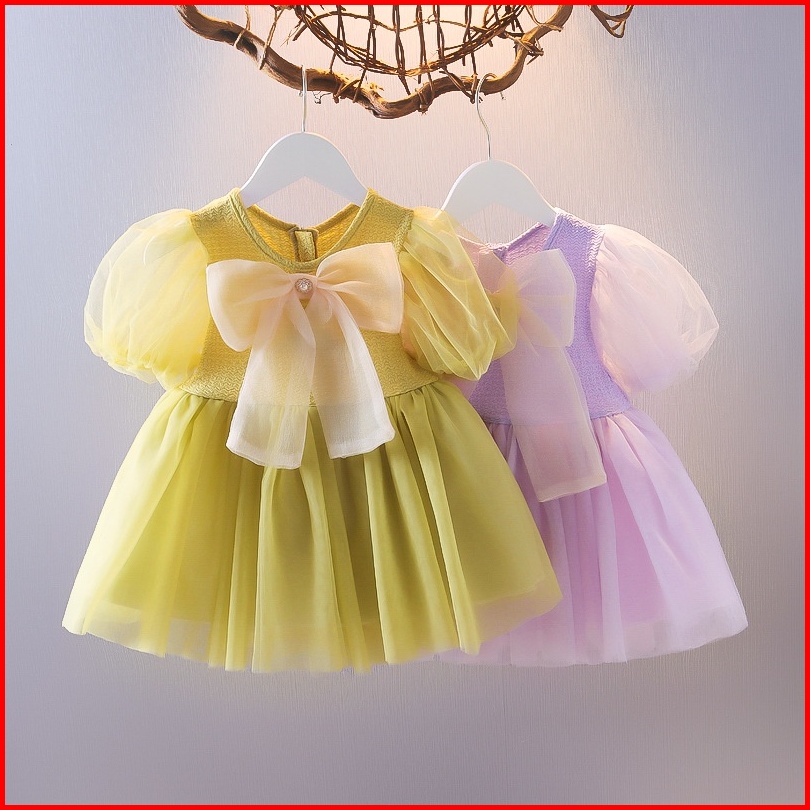 Haasya Kids 0-4 Tahun Anak-anak Versi Korea Dari Asing Gaya Anak Musim Panas Warna Solid Gaun Lengan Pendek Ikatan Simpu