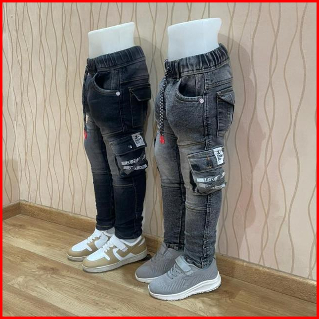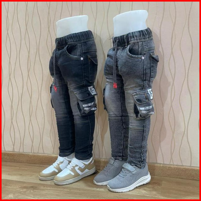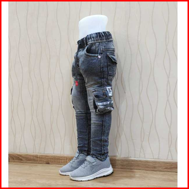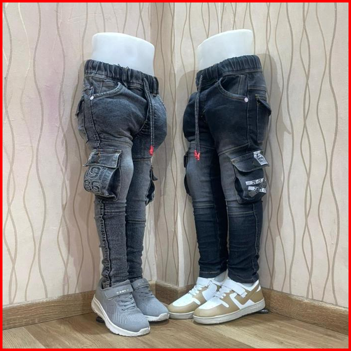 Celana Panjang Jeans Anak Laki-laki Usia 4 - 12 Tahun Bahan Jeans Stretch Melar Model Cargo Kantong Gamblok Bordir Gaul