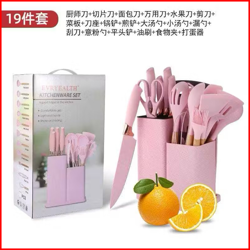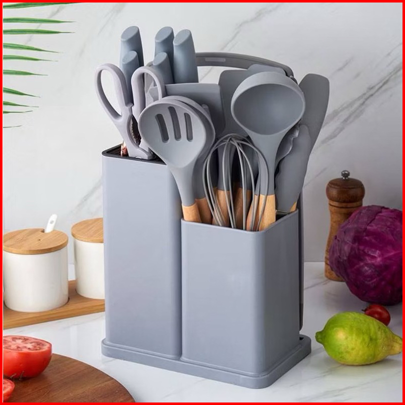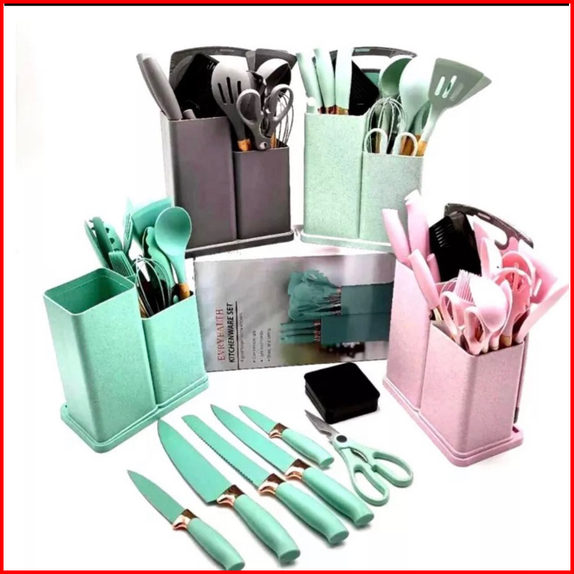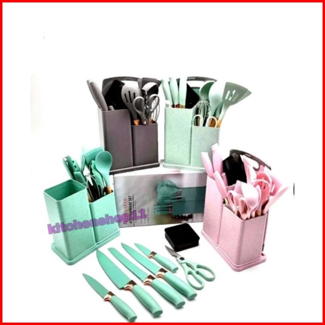 19pcs Spatula Sutil Sodet Silikon Tahan Panas Lengkap Utensil Set Silicone Pisau Keramik Set Talenan Piso Keramik Guntin