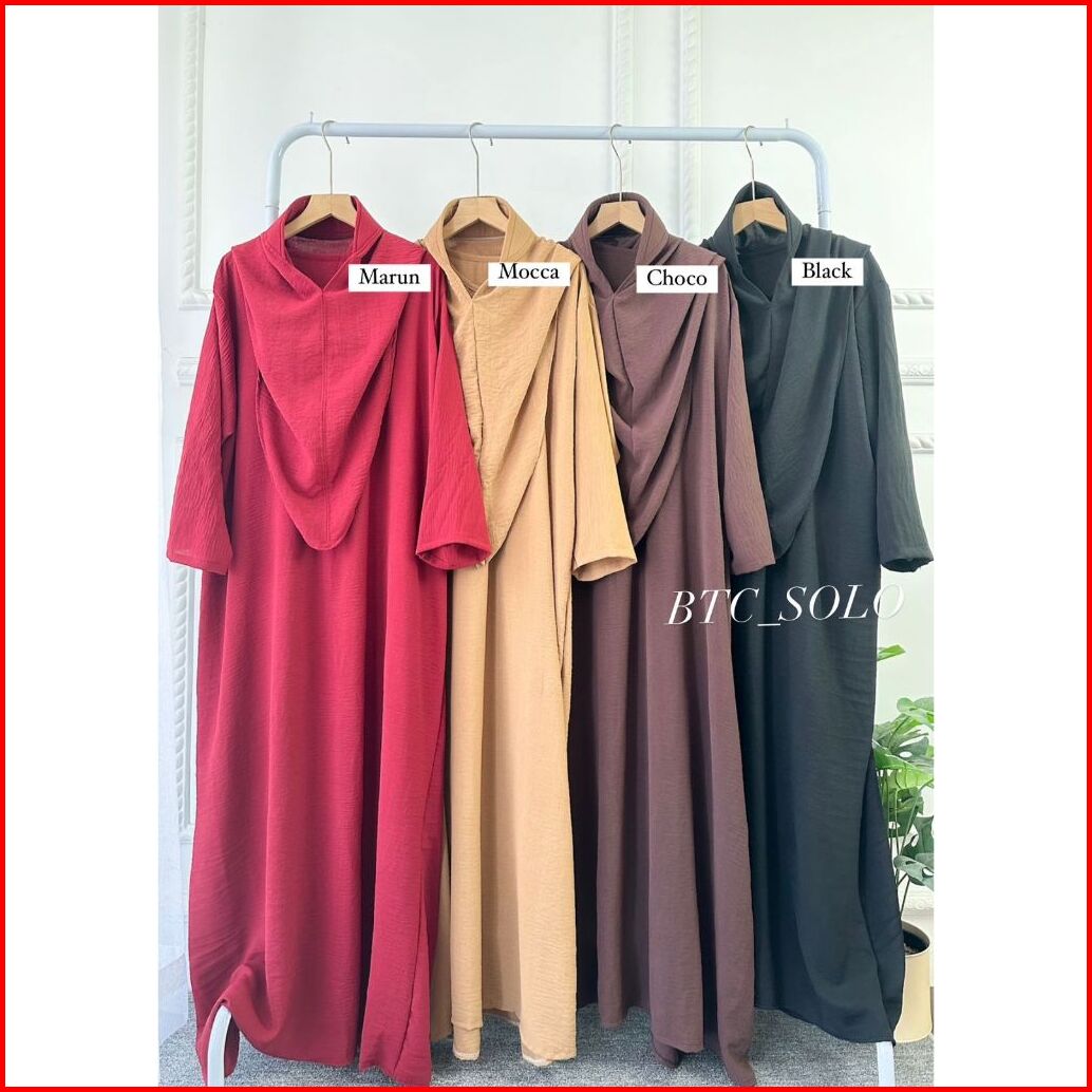 Nurliza Abaya Setelan Khimar Ped Set Oneset One Set Gamis Premium Wanita Muslimah Airflow Crincle Crinckle Btcsolo Panja