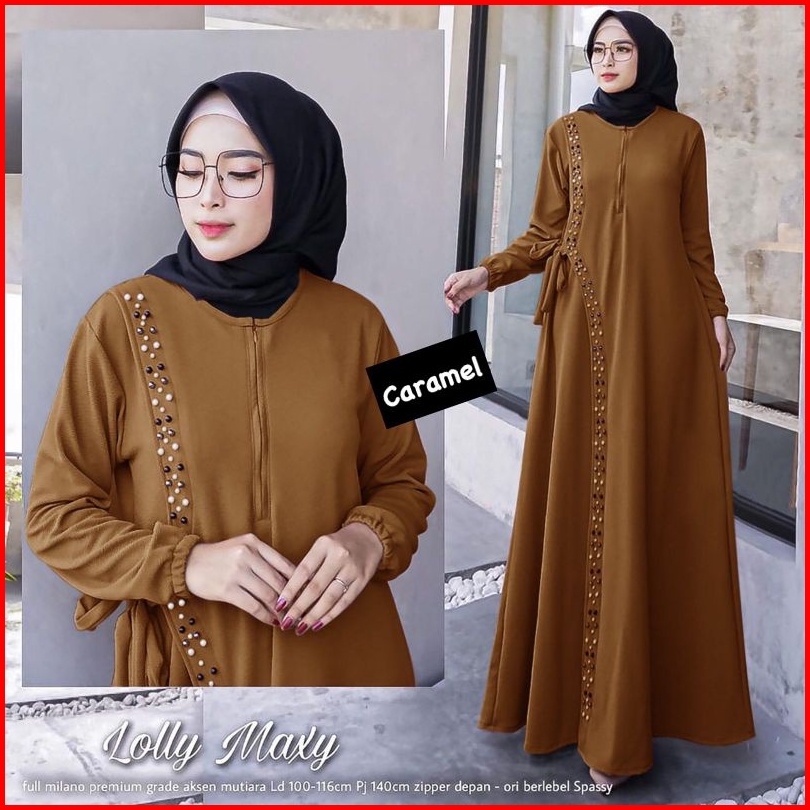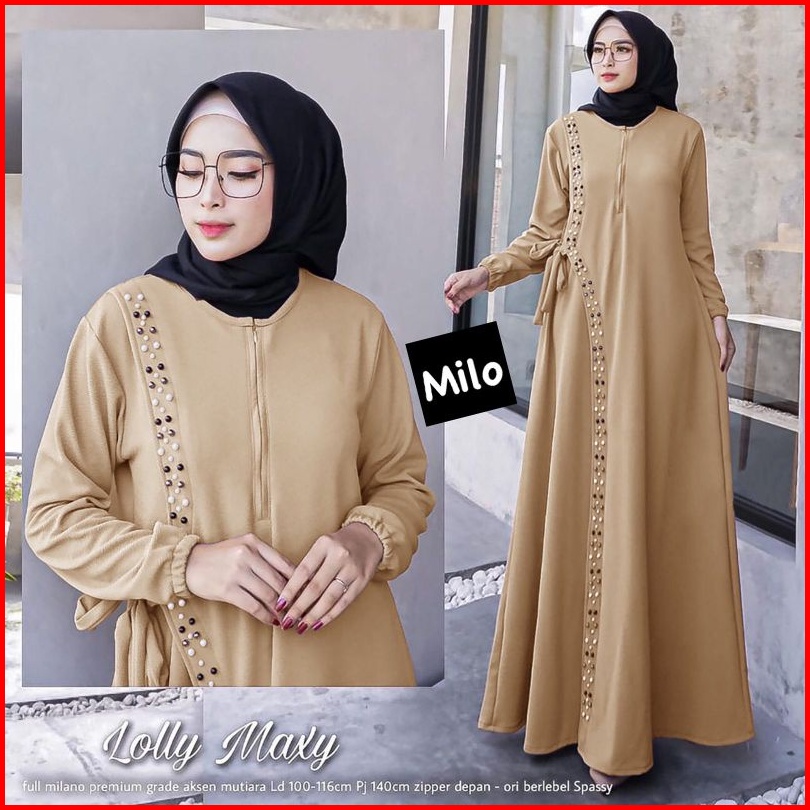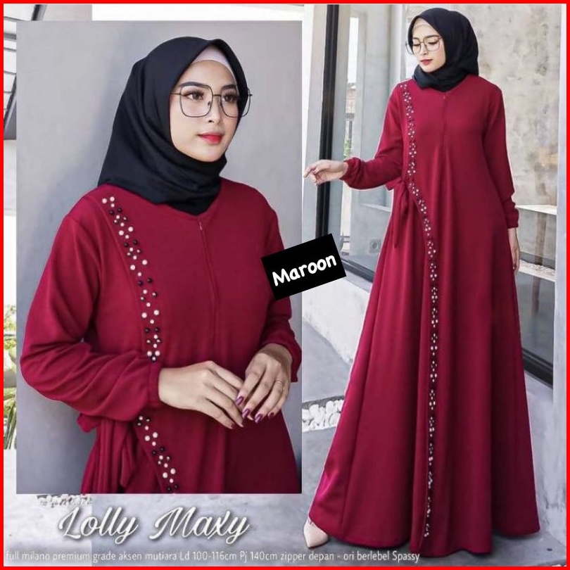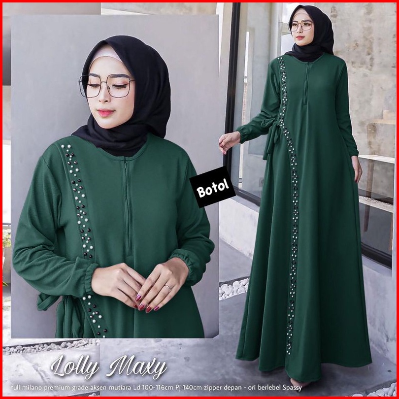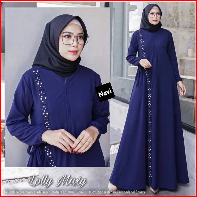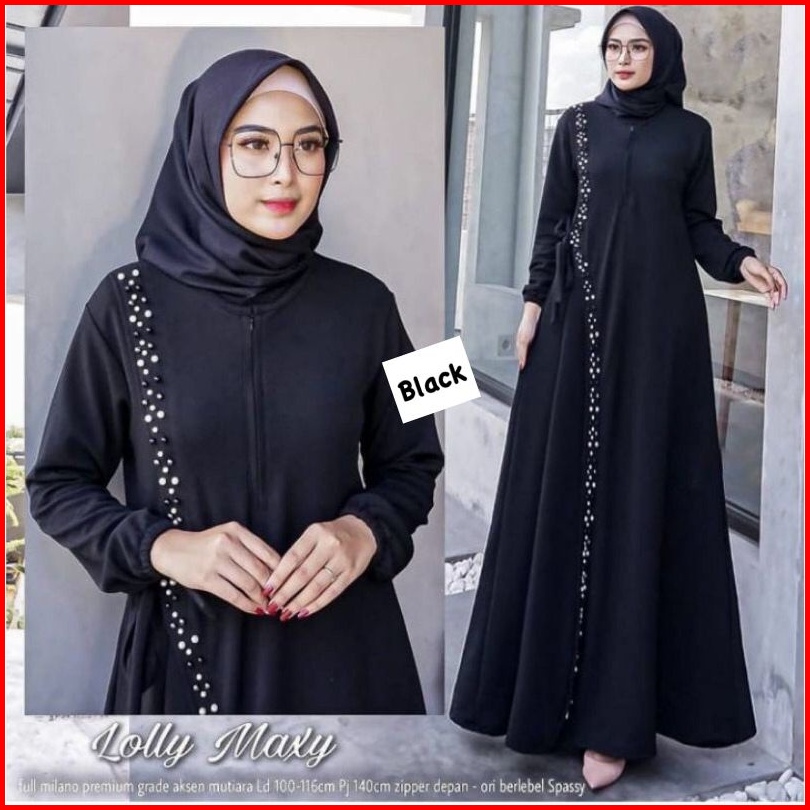 Am - Lolly Maxy Gamis Abaya Wanita Muslim Milano Premium Busui Aplikasi Mutiara 266-6089