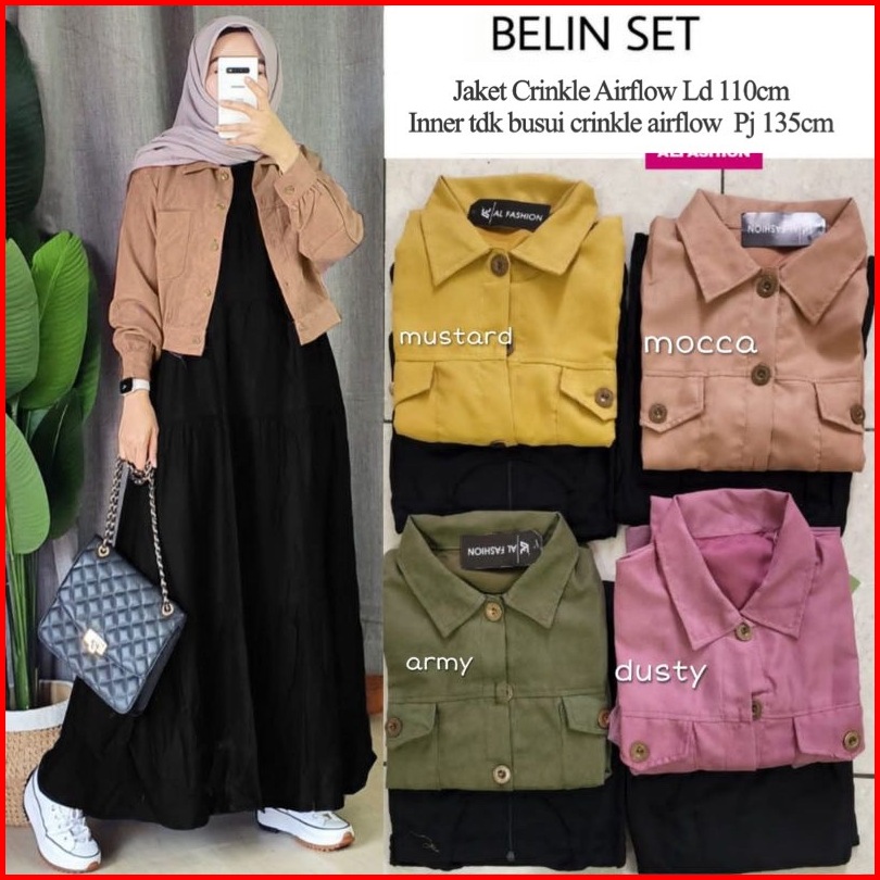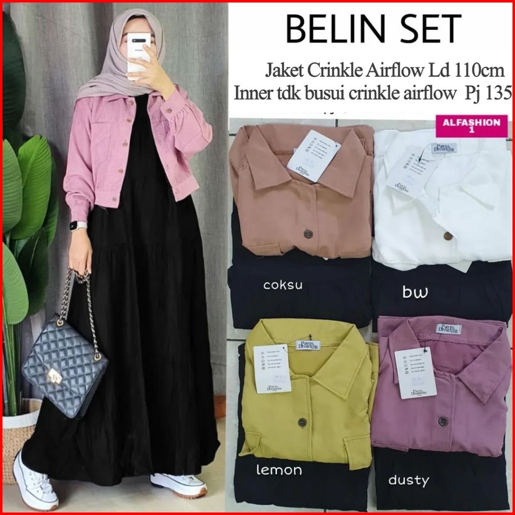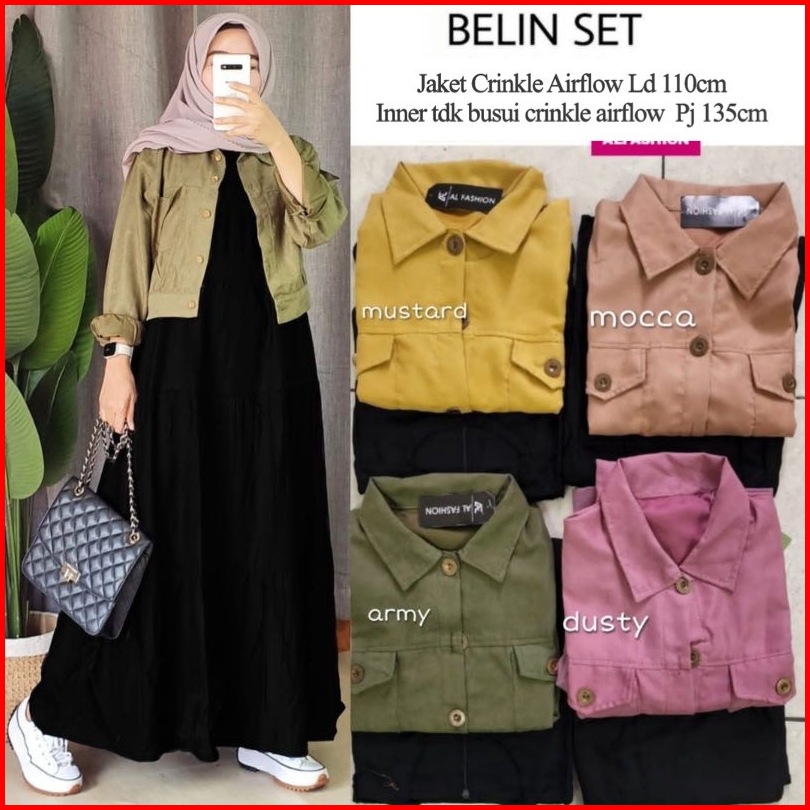 2in1 Gamis Belin Set Crinkle Airflow Gamis Polos Wanita Gamis Wanita Remaja Kekinian Gamis Jaket Wanita Polos Kekinian O