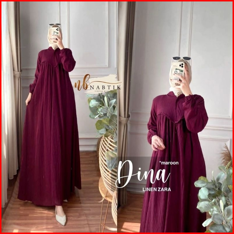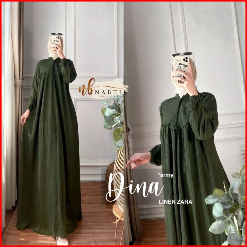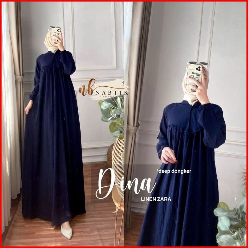 Dina Gamis Bahan Linen Premium Dress Muslimah