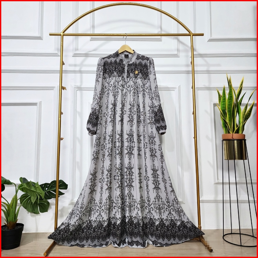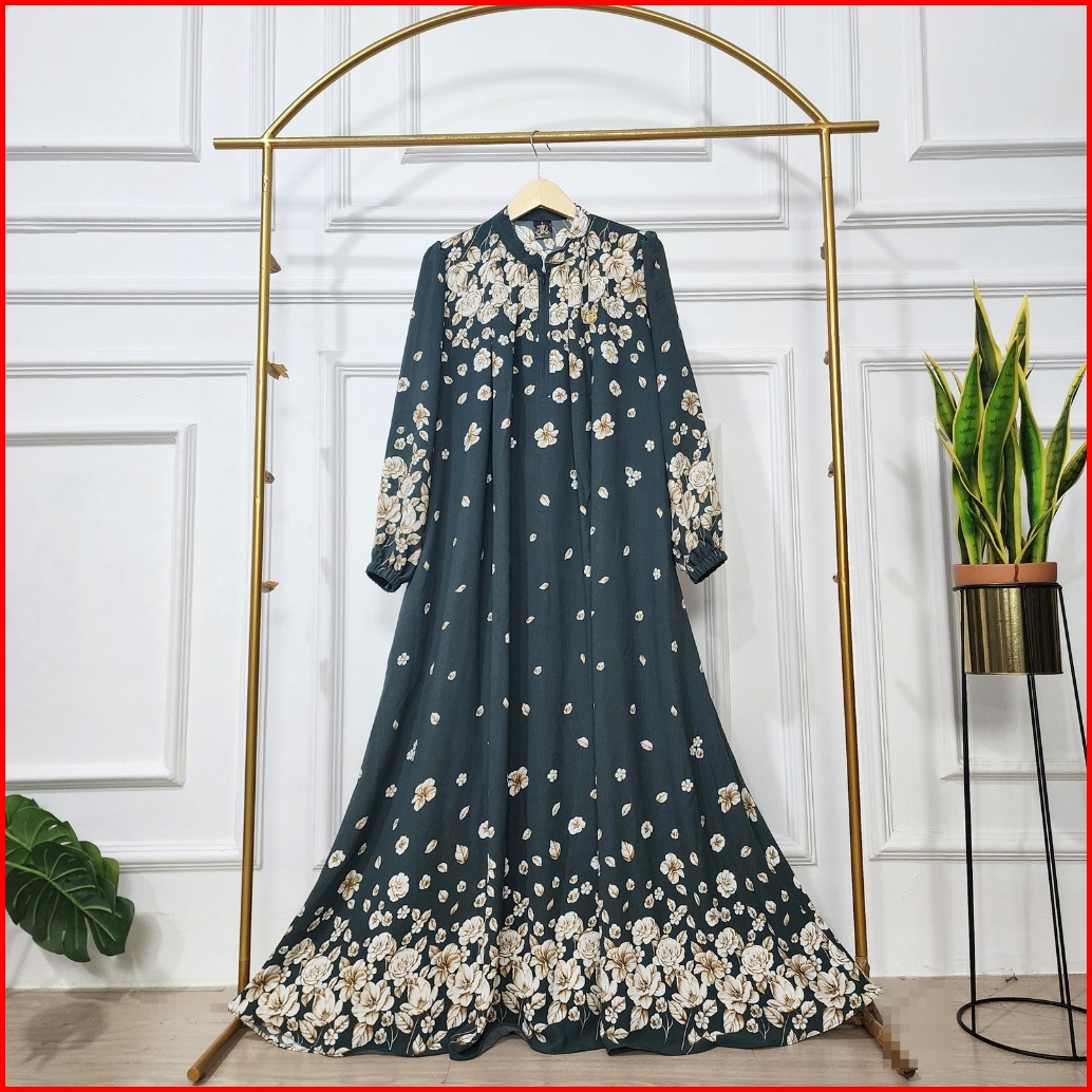 Gamismurahelsyifa - Gamis Muslim Wanita Terbaru Bahan Crinkle Aleva Dress Jumbo Motif Cantik Mewah Inayah