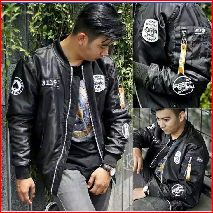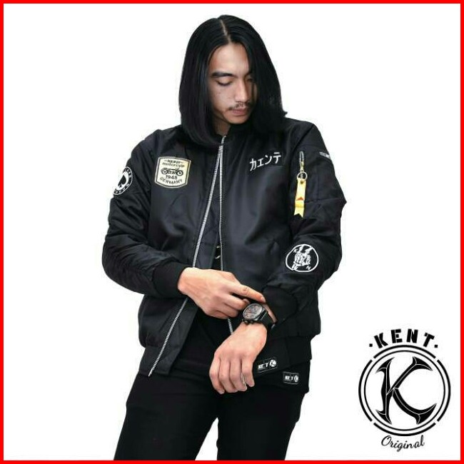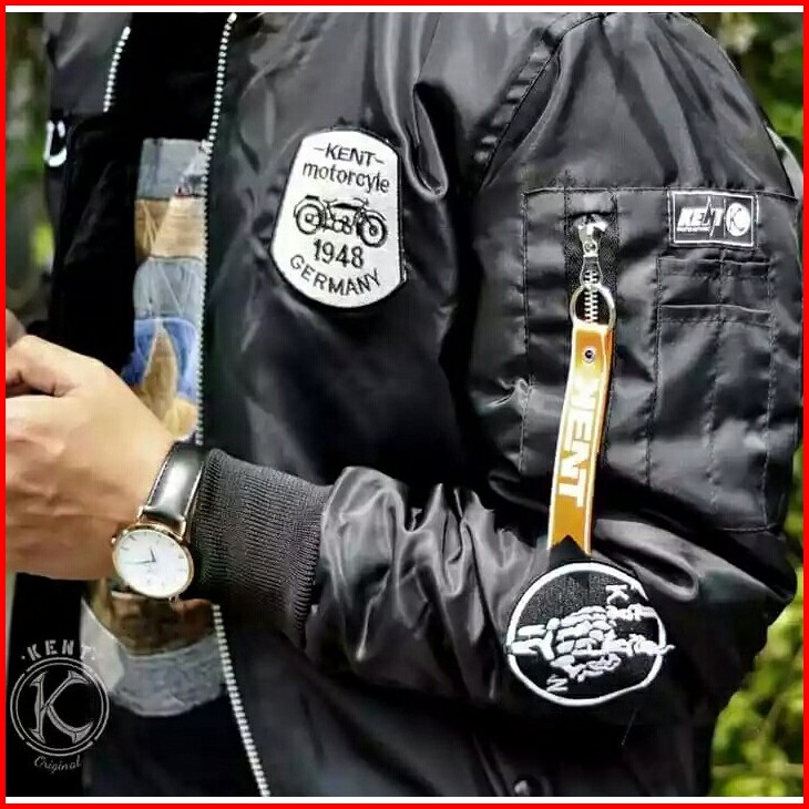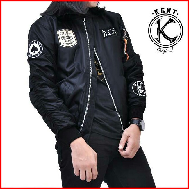 Kent Jaket Bomber Pilot Kent Rider Black Original Casual Pria Wanita