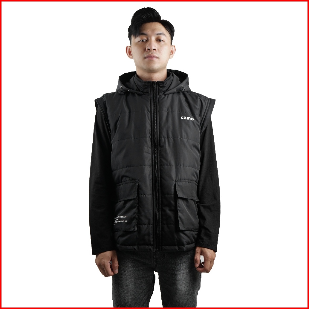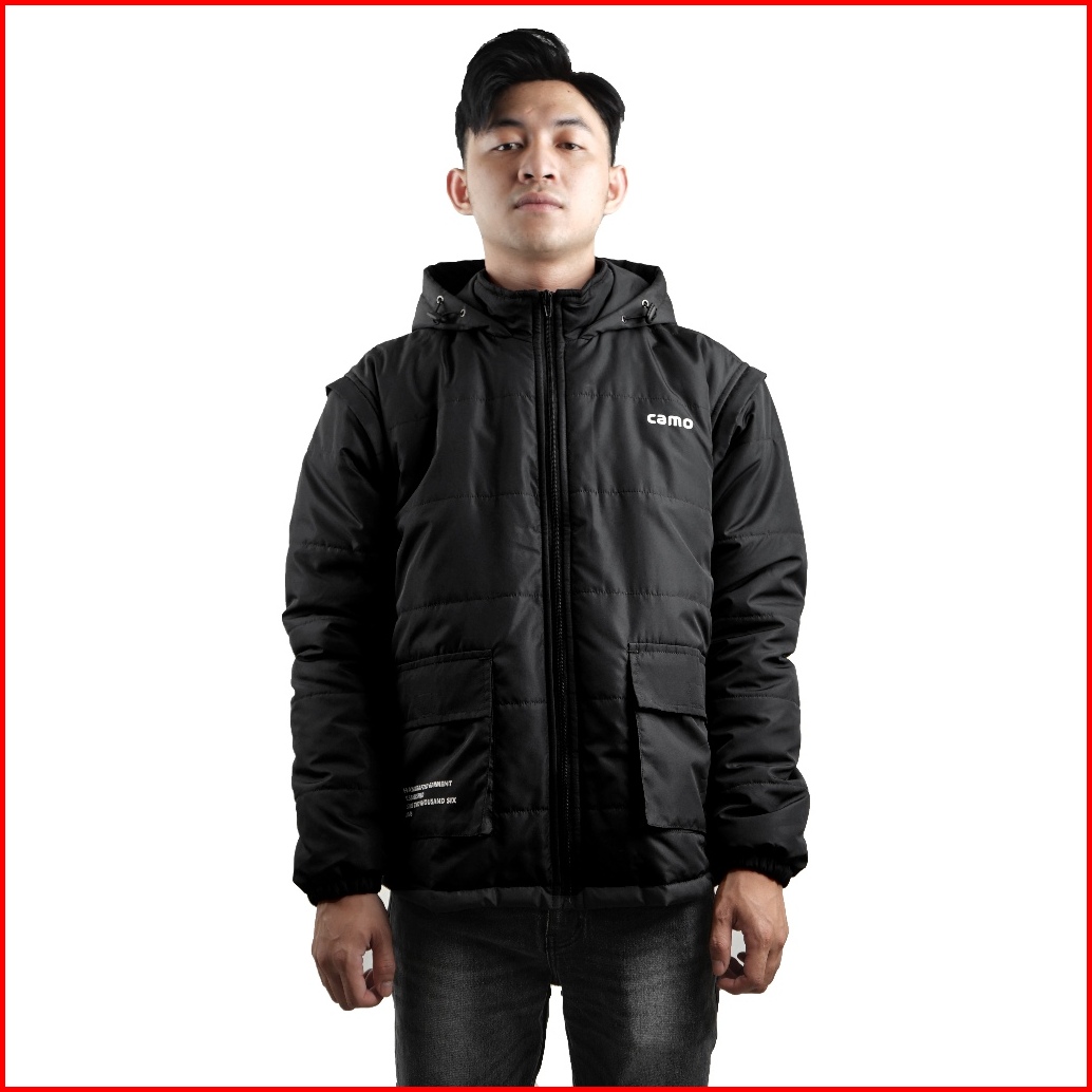 Camo - Jacket Puffer 9336 Black Jacket Gelembung Outdor Windbreaker Unisex