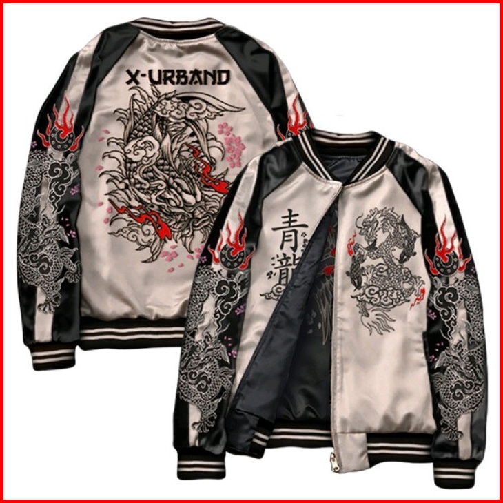 Jaket Varsity Sukajan X Urband Jaket Sukajan Embroidery Two In One Dragon Koi