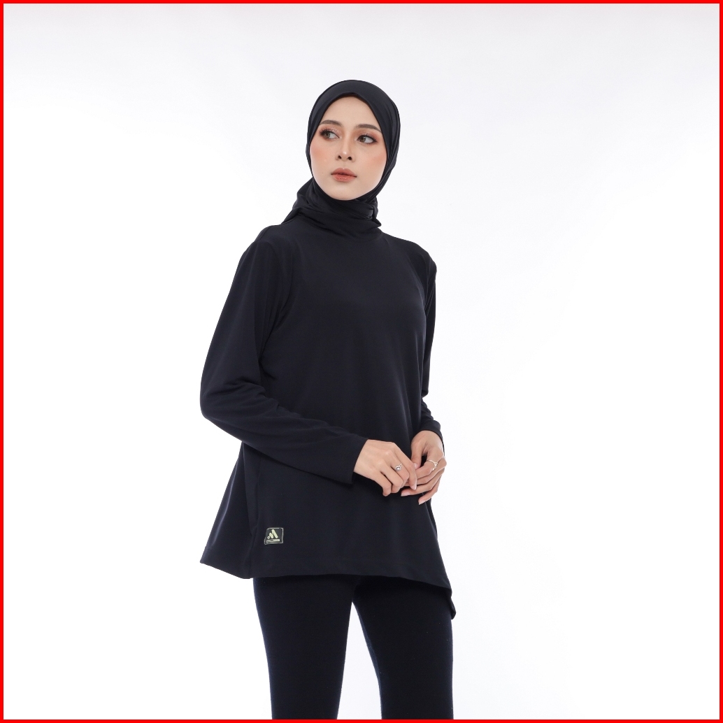 Terbaru- Jaket Atau Baju Atasan Olahraga Wanita Inner Jersey Lengan Panjang Jeans Pria Dewasa Denim Black Polos