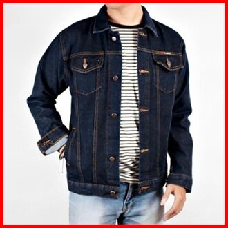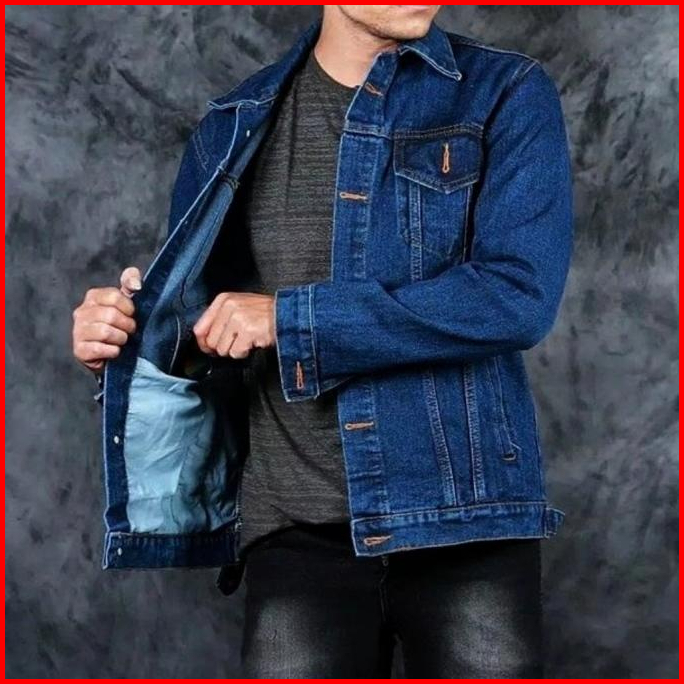 Jaket Jeans Pria Denim Cowok Pria Biru Tua Biowash M - Xl Terbaru Terlaris Terpopuler Premium