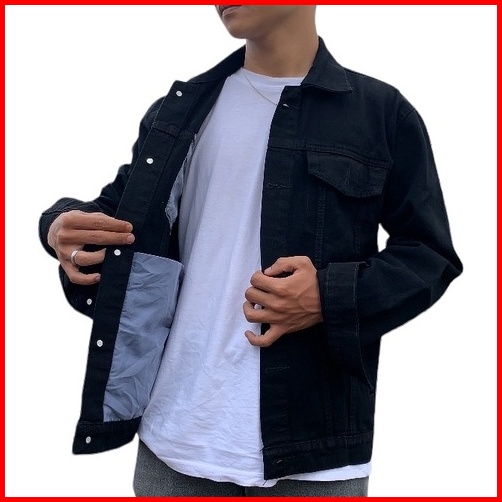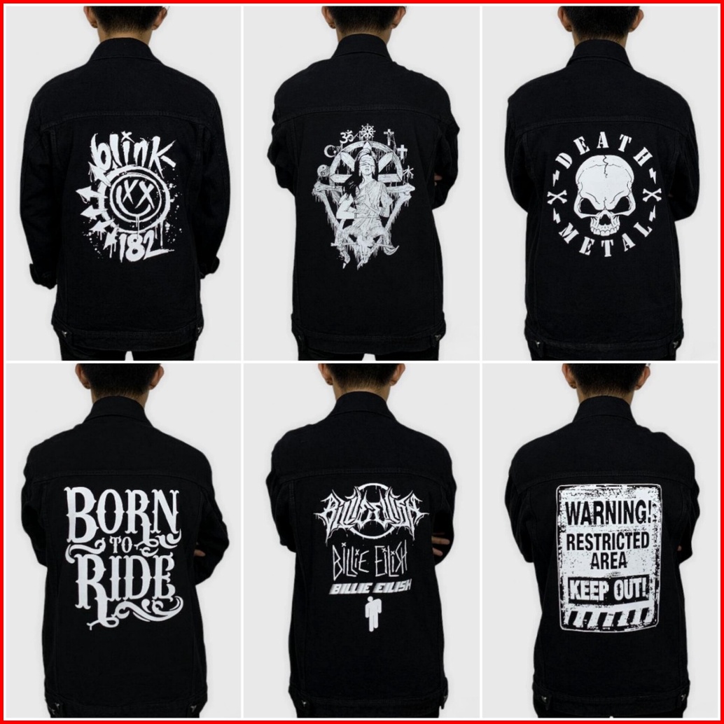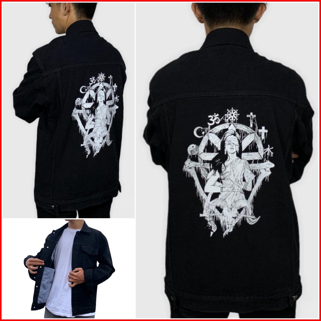 Jaket Jeans Denim Sablon Gambar Belakang - Black Premium Quality Best Seller