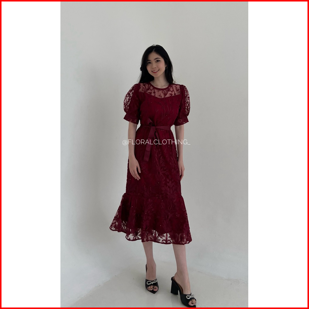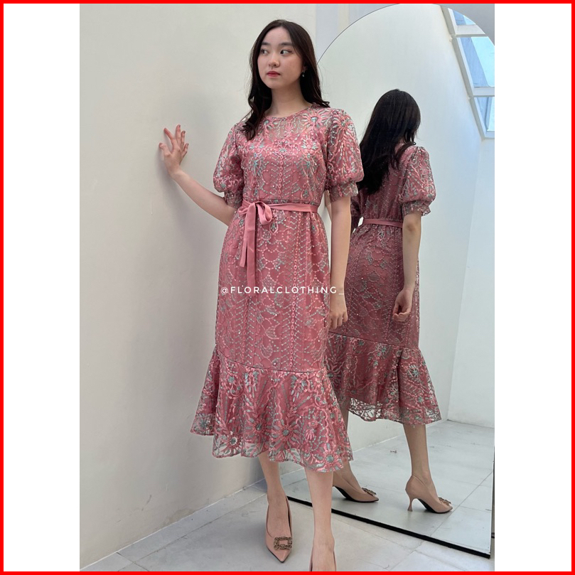 F340 Dress Bodycon Duyung Wanita Kondangan Pesta Bridesmaid Brokat Premium