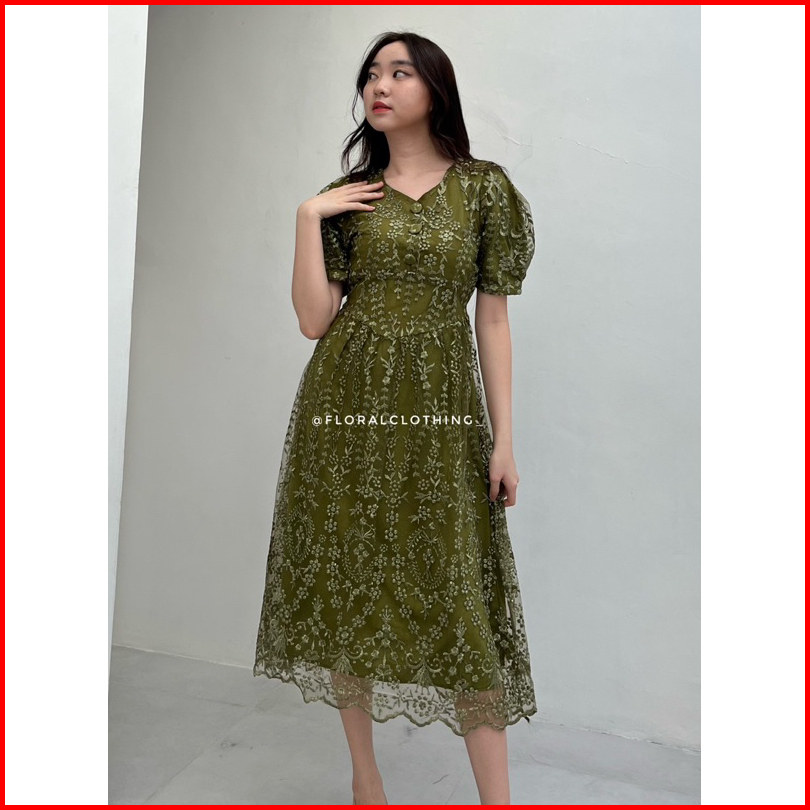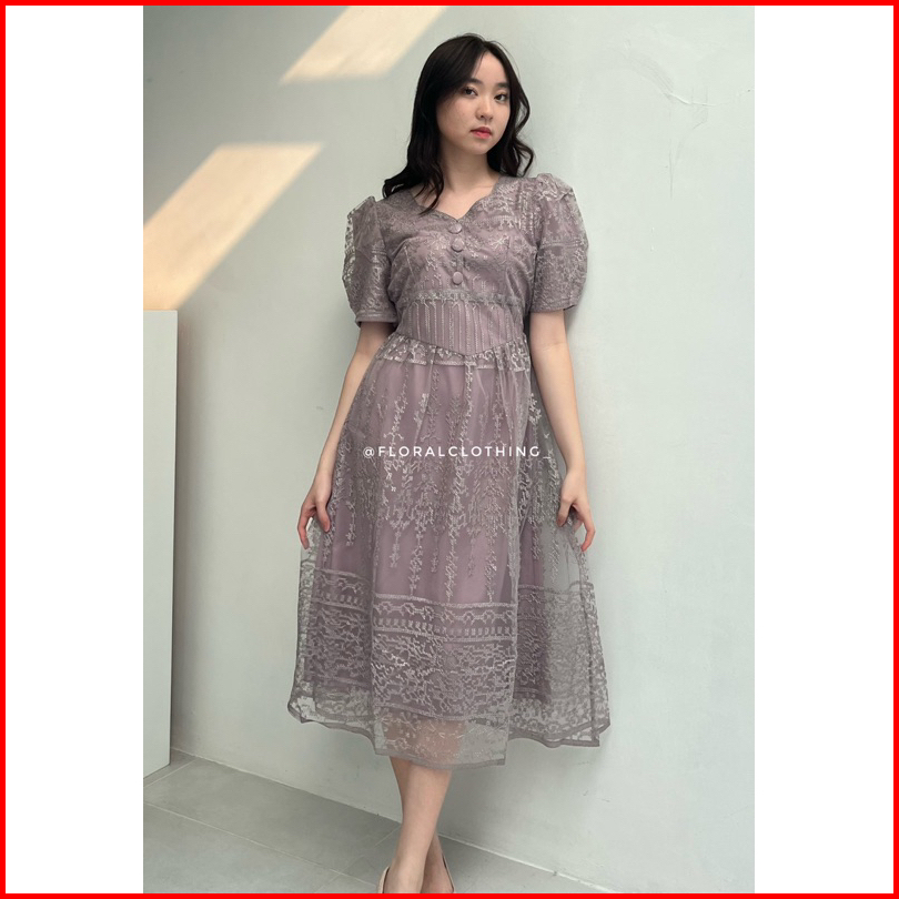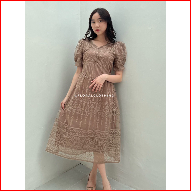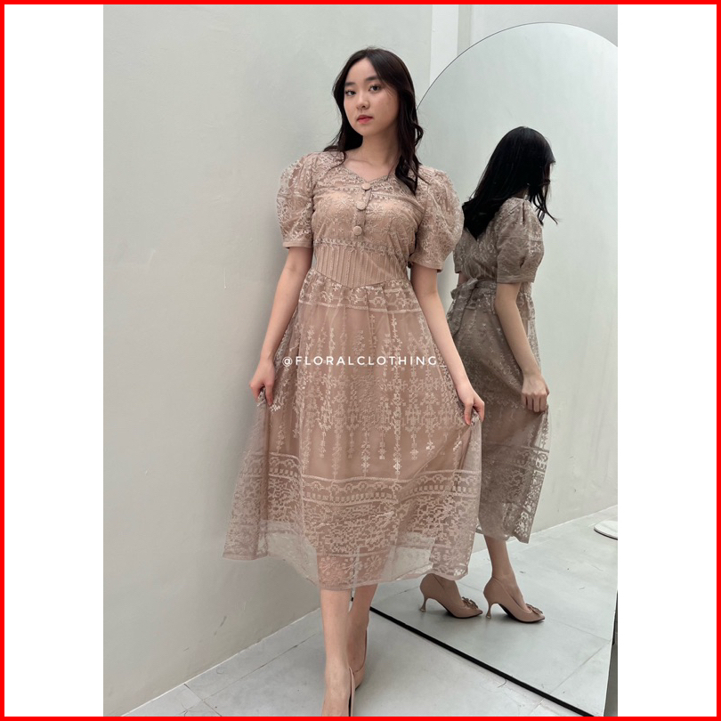 F320 Dress Wanita Kondangan V-neck Bridesmaid Pesta Mewah Bahan Premium