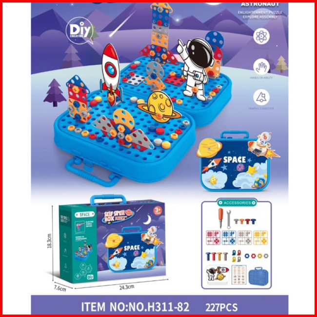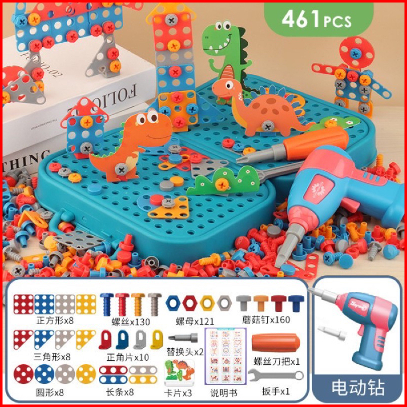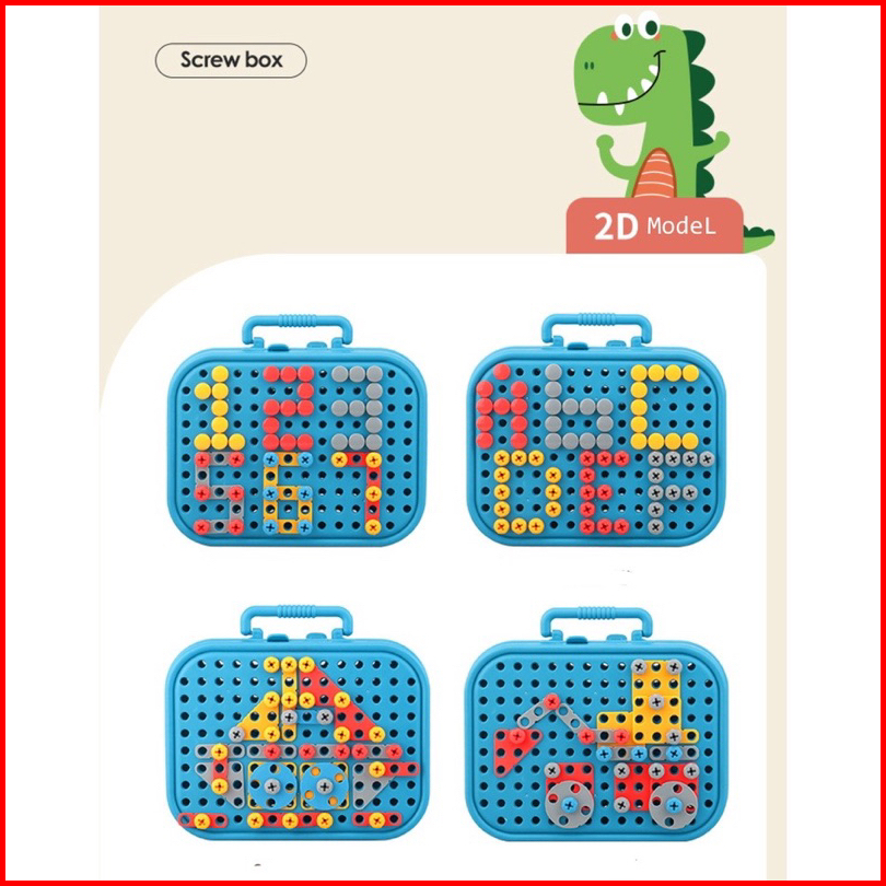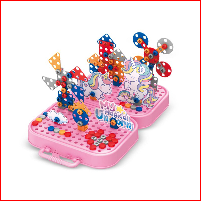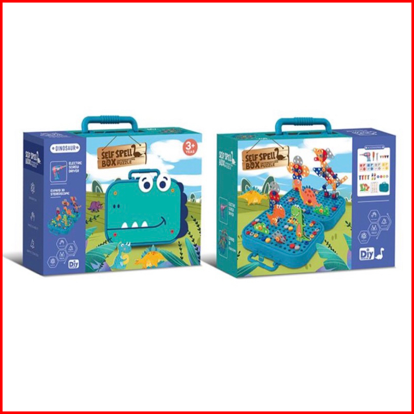 Mainan Drill Screw Anak 467 Pcs Box Spelling Unicorn Dinosaurus Space Mainan Bor Tukang Obeng Baut Kotak Alat Simulasi A
