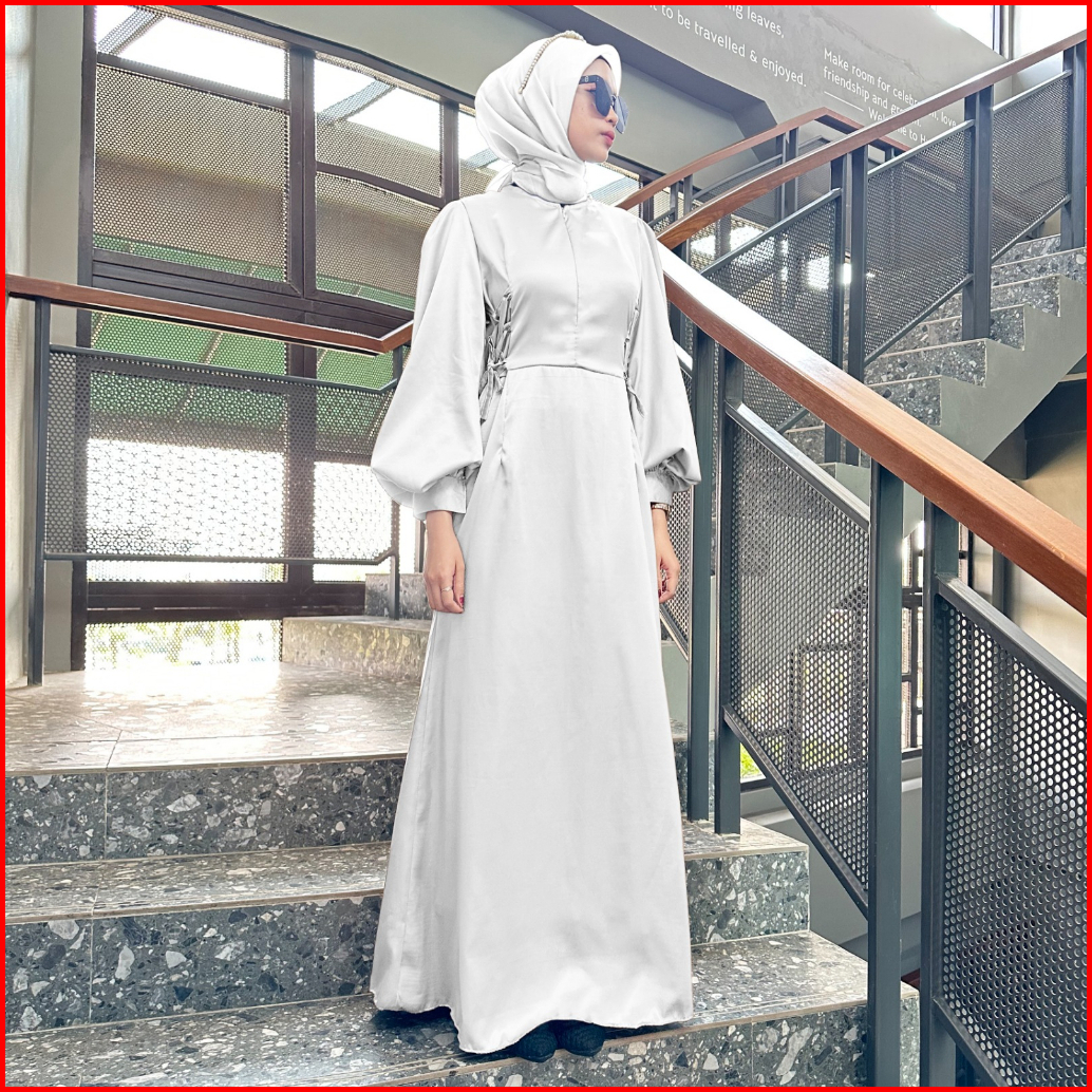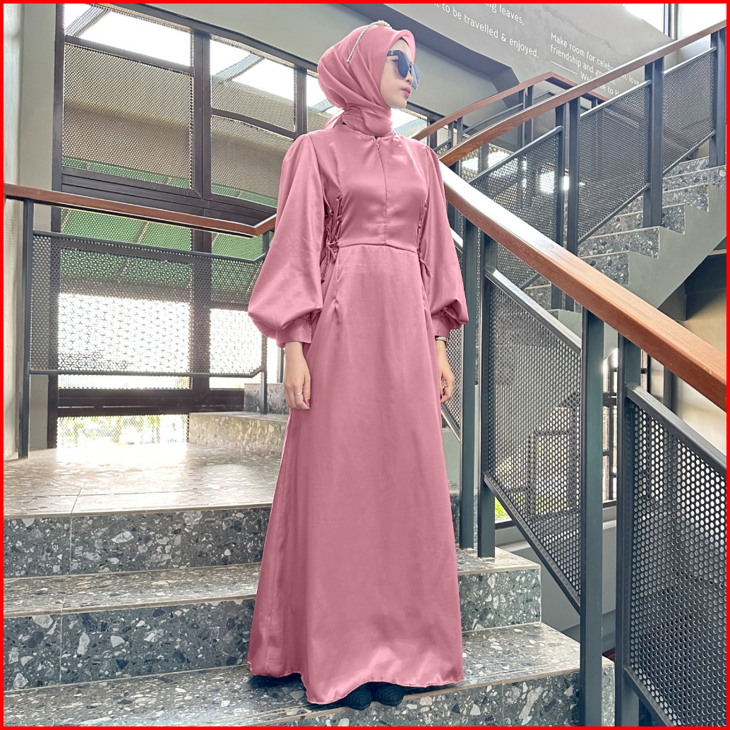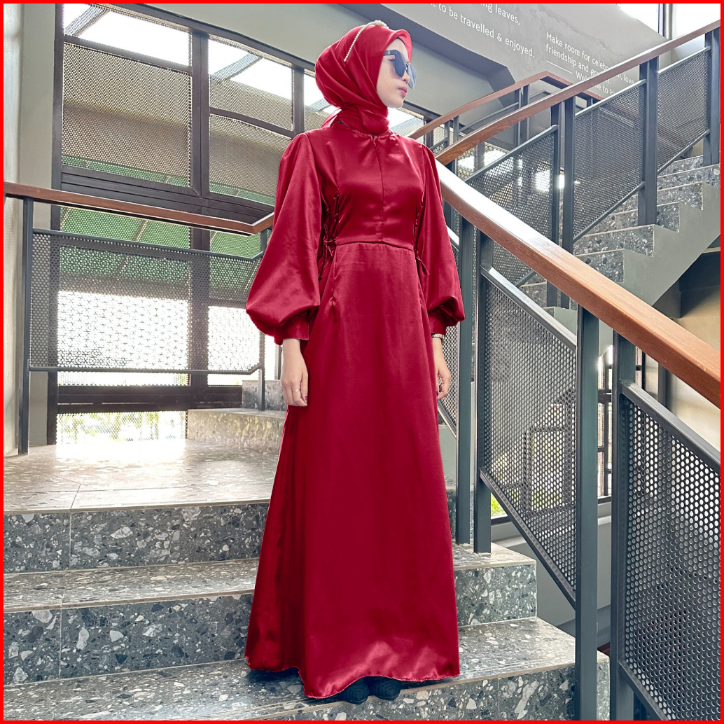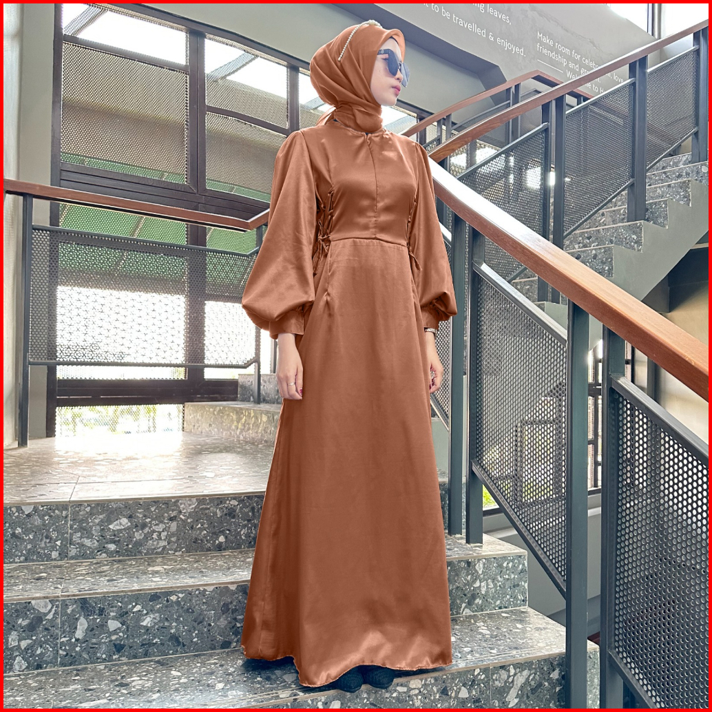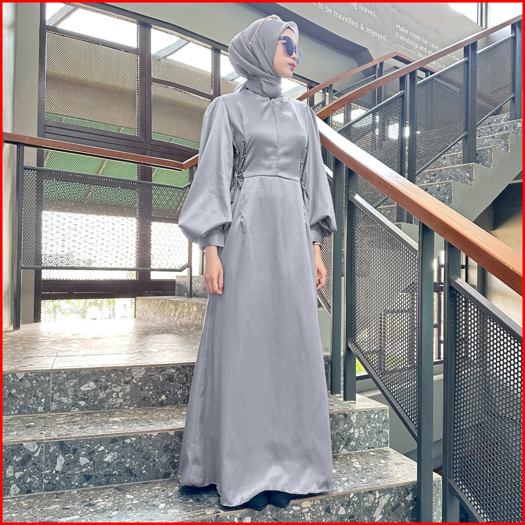 Demore Maxi Naezira Dress Silk Mewah Tangan Balon Gaun Pesta Kondangan Muslim Uk L Xl