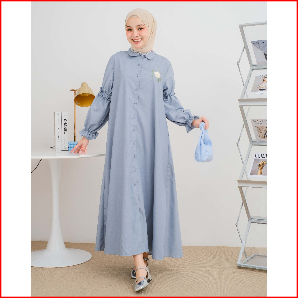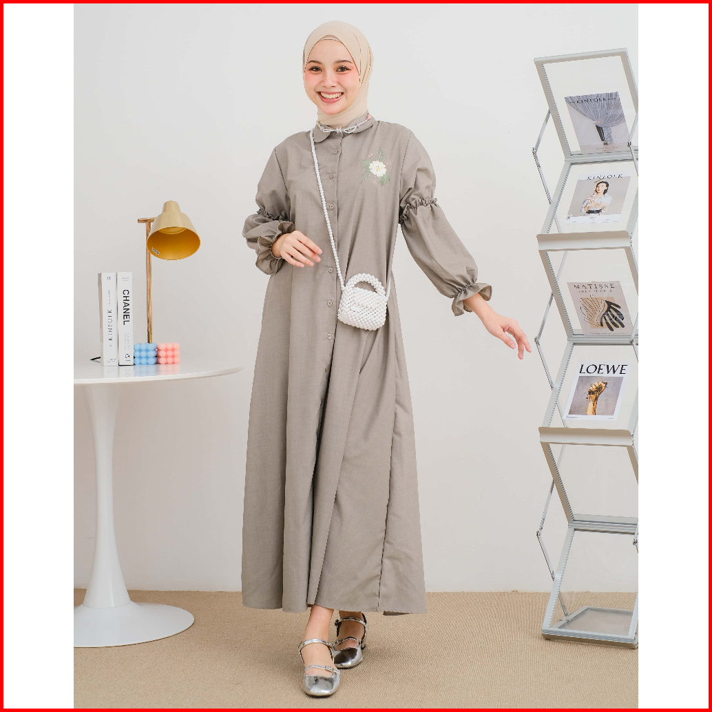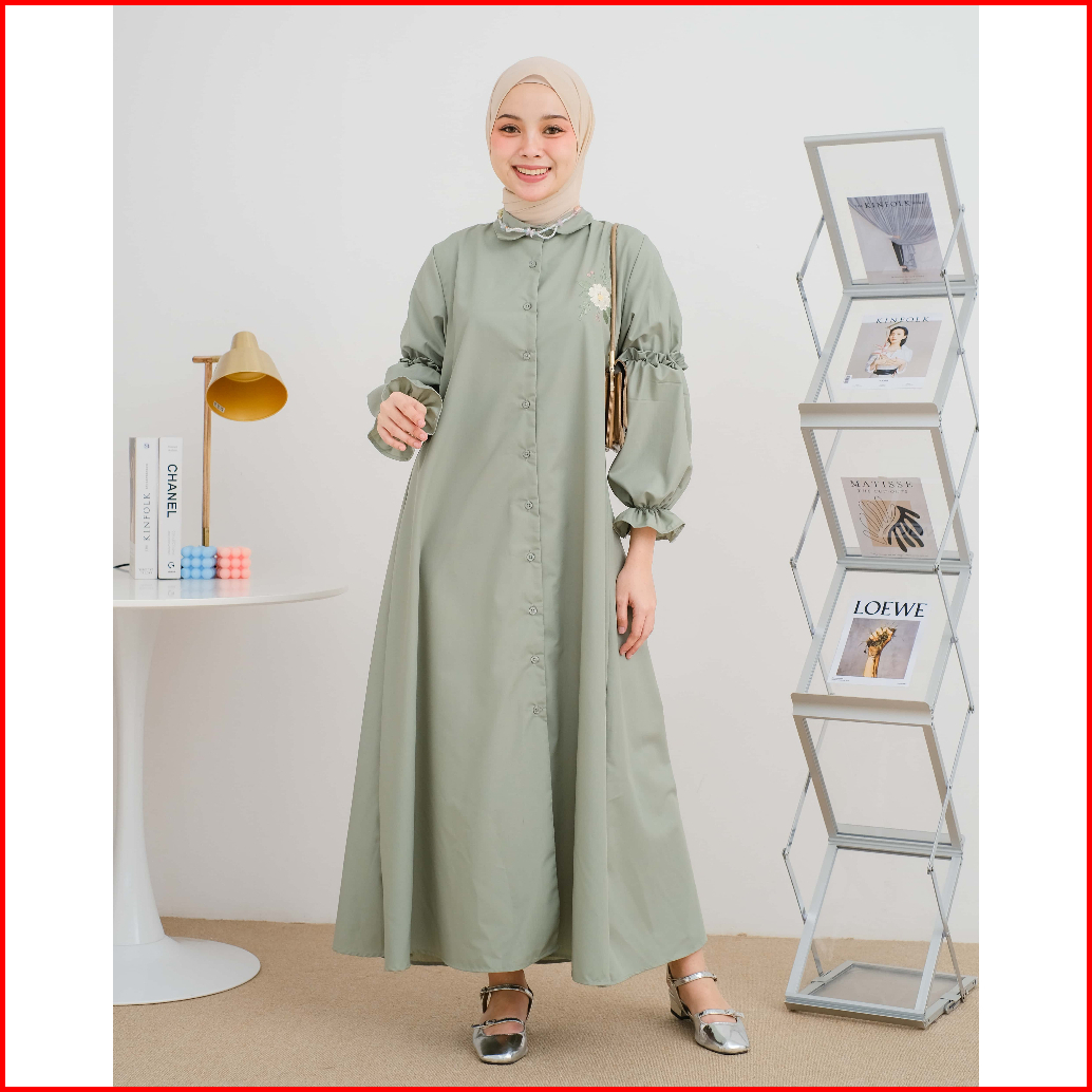 Mayoutfit Chiora Mididress Dress Gamis A-line Bordir Bunga Lengan Karet
