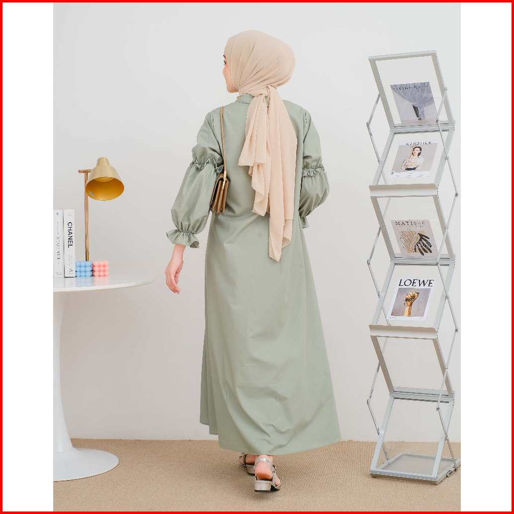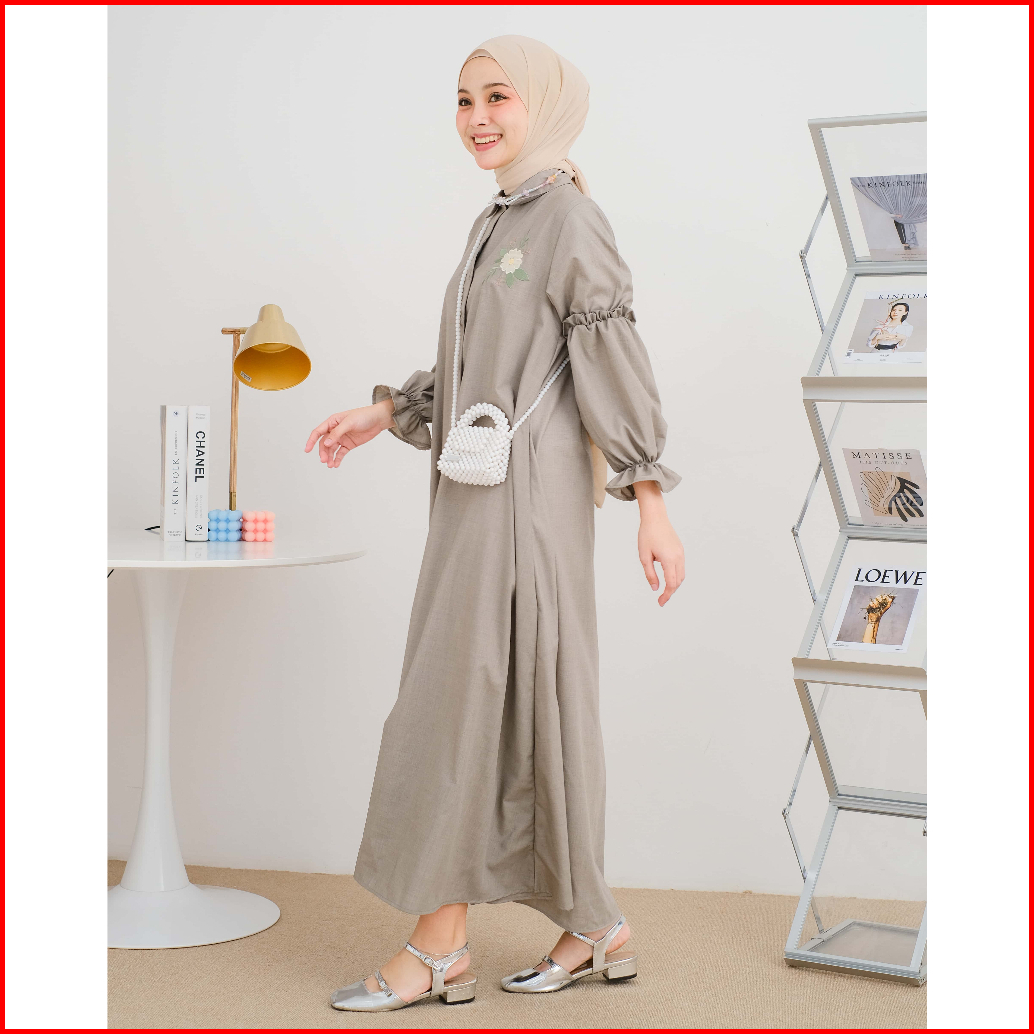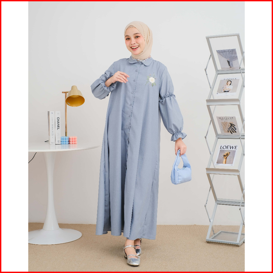 Mayoutfit Chiora Mididress Dress Gamis A-line Bordir Bunga Lengan Karet