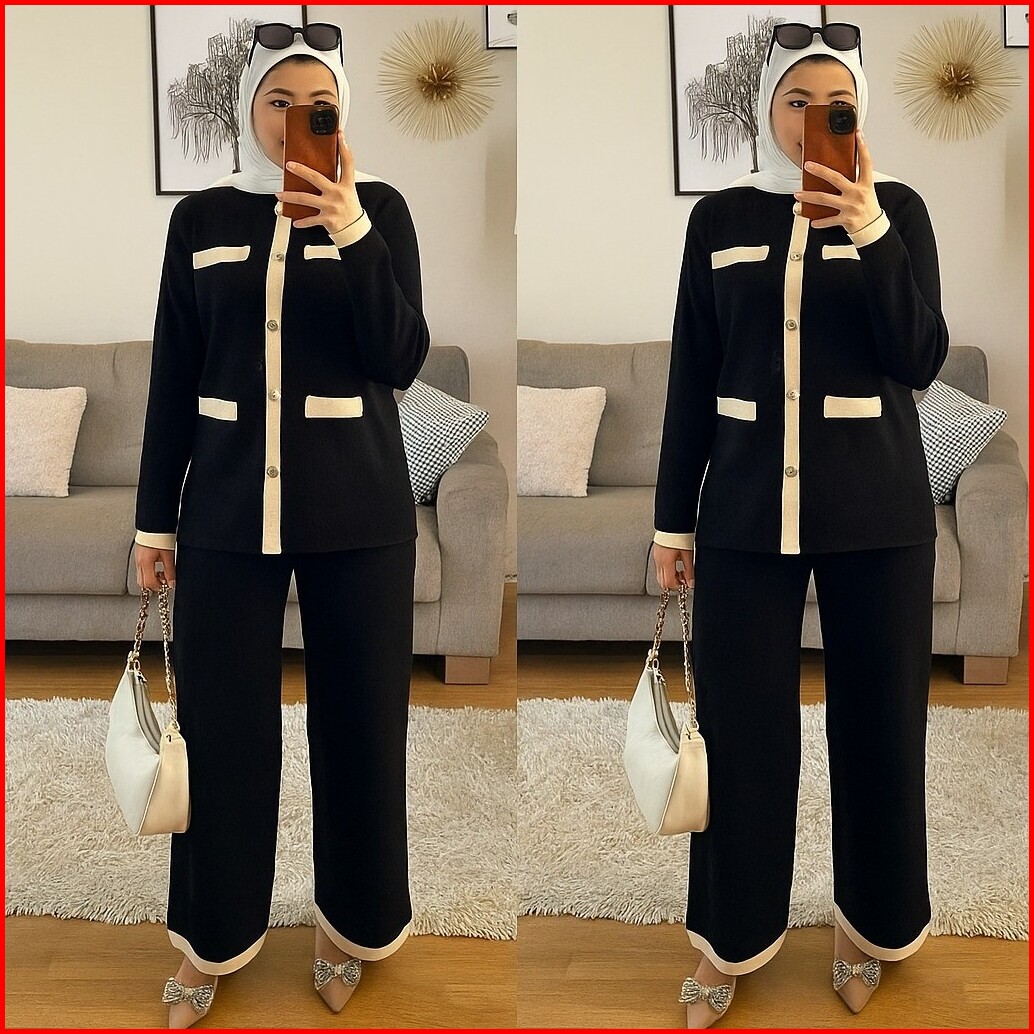 - Qiana Set Setelan Wanita Muslim Daily Outfit Casual Matt Caramel Knit Polos Premium All Size Fit To Xl Besar Ootd Set