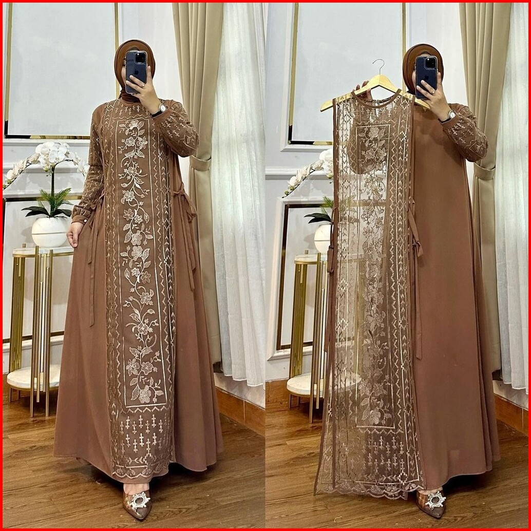 - Wilona Dress Maxy Gamis Muslim Wanita Dewasa Modern Mix Brukat Tille Premium All Size Fit To Xl Besar Ootd Pesta Konda