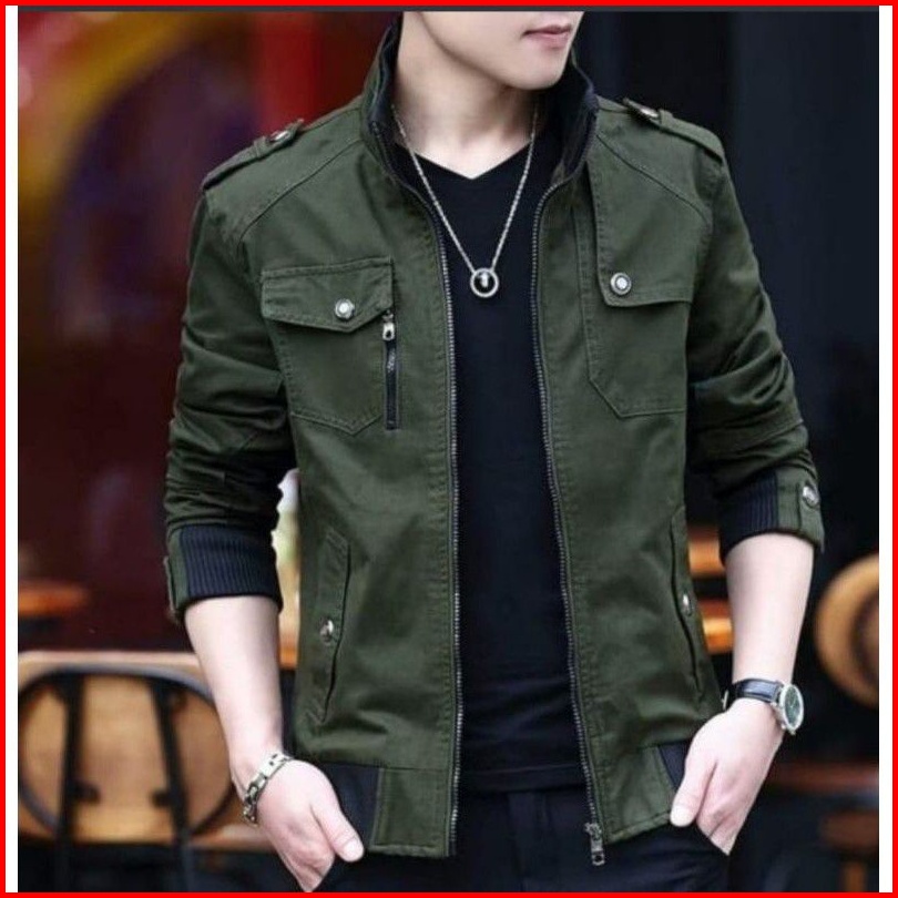 Jaket Bomber Pria Trend Line Jaket Pria Kasua Jaket Pria Bahan Katun Dril Jaket Cowo