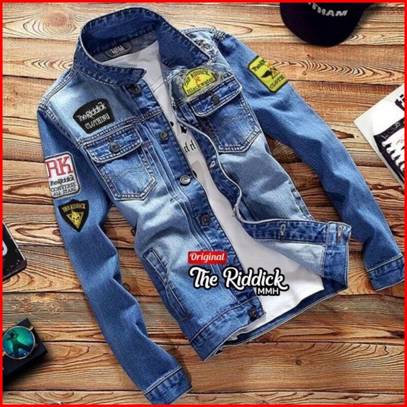 Jeans Denim Emblem -jaket Jeans Sandwash-jeans Hitam-jeans Denim-jaket Jeans Cowo-jaket Jeans Pria-jaket Jeans Pria Embl