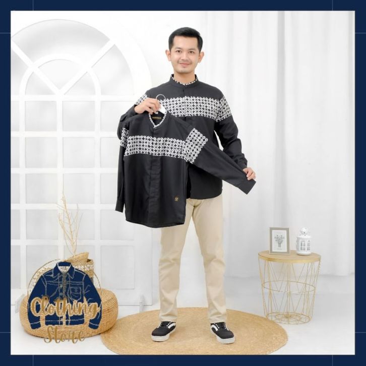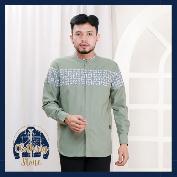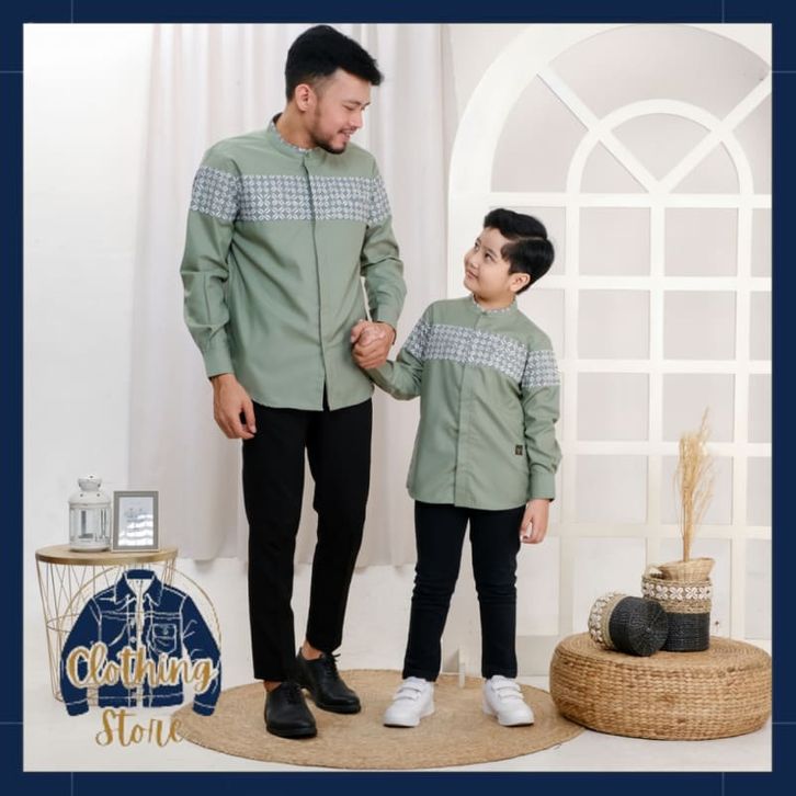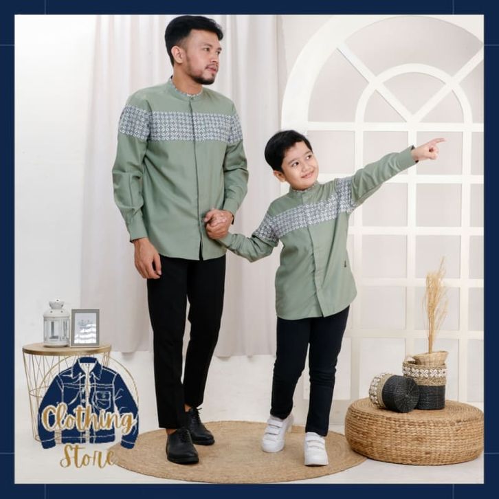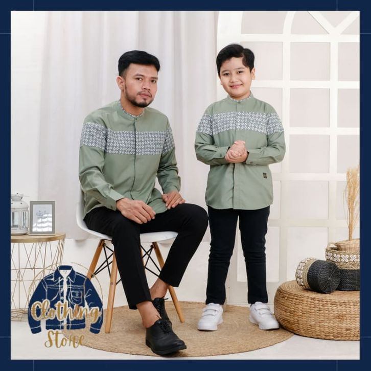 Mufatih Kemeja Koko Batik Couple Kemko Bahir Ayah Anak Warna Sage
